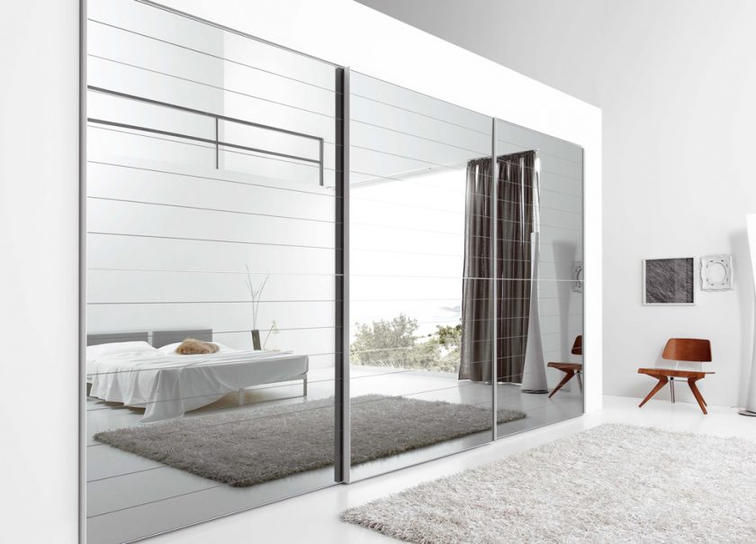 Roupeiros deslizantes com superfície refletora não são apenas atraentes, mas também práticos. Além de espaço para roupas, nos permitem avaliar a aparência antes de sair de casa.