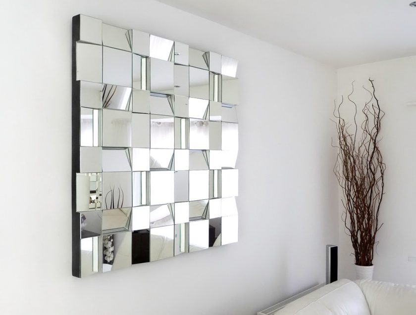Ao criar mural nós conectamos telhas de espelho quadradas ou triangulares.O design não tem função prática, serve para decorar os vazios nas paredes.