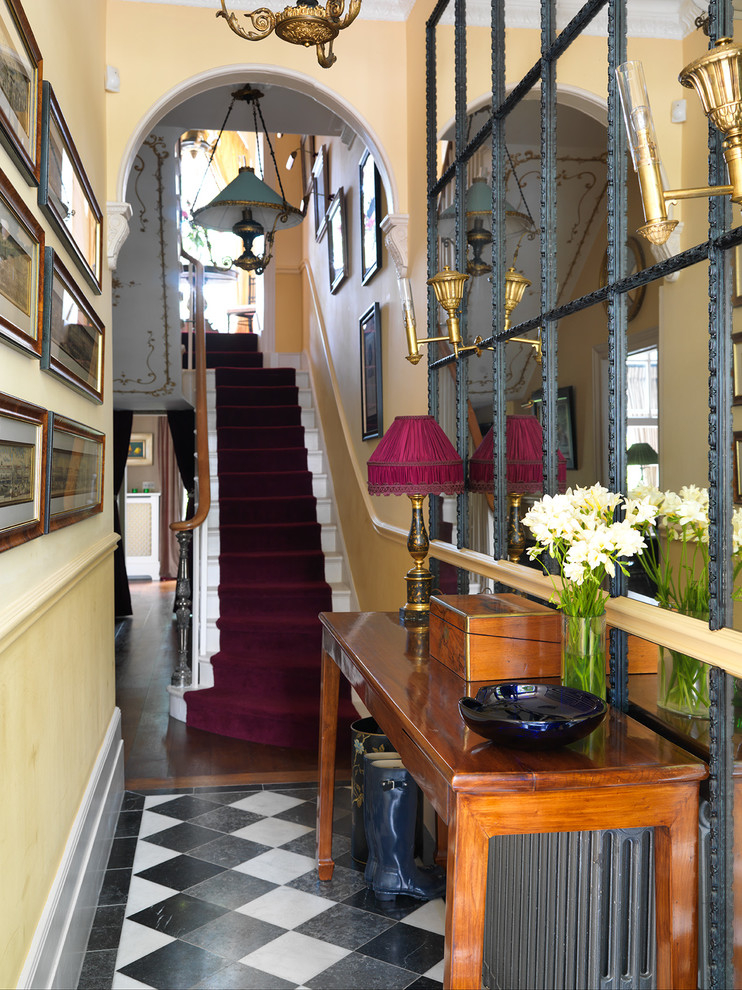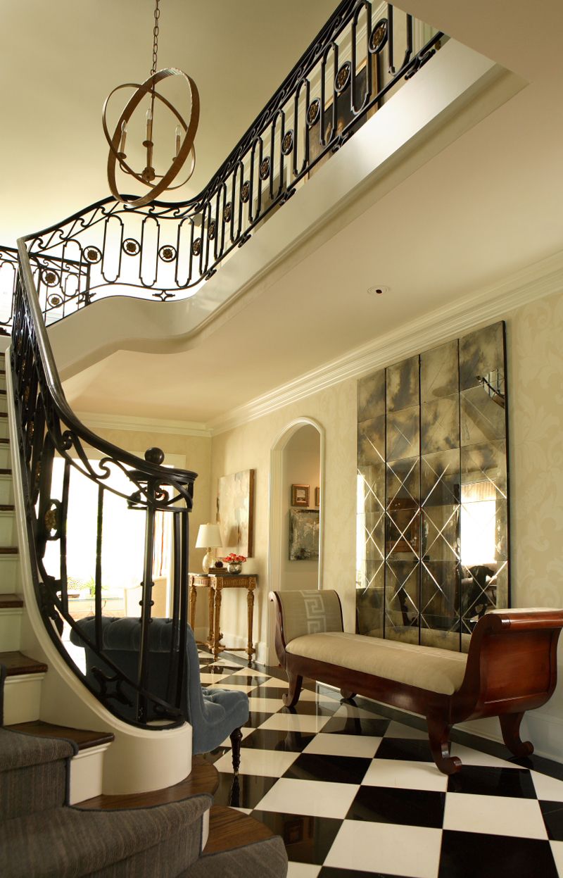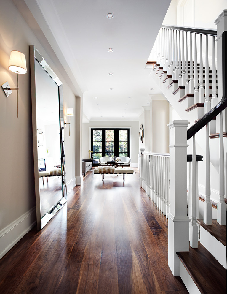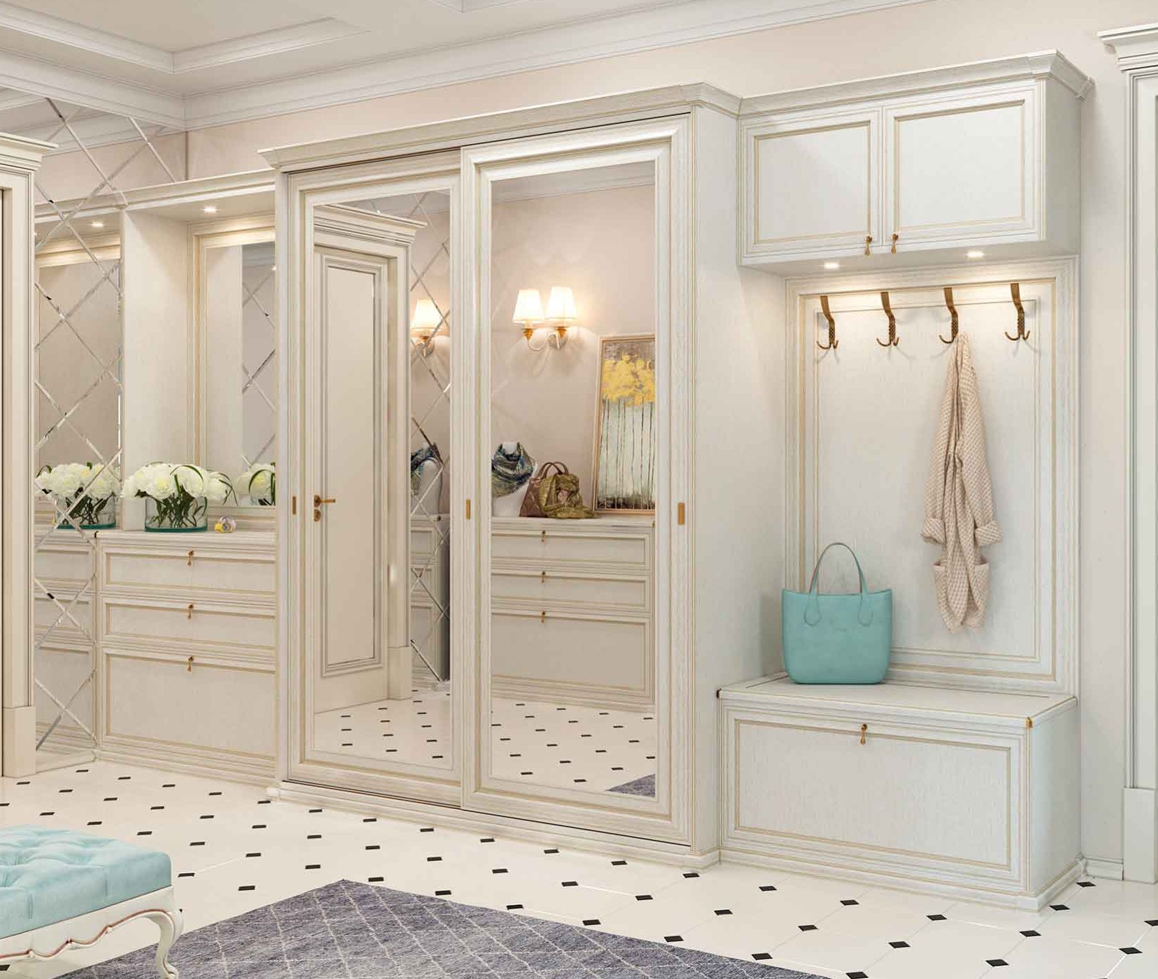 Para um grande corredor, um estilo clássico com decorações é apropriado (se apropriado). Não tenha medo de transbordar do quarto, caso contrário, pode parecer vazio.