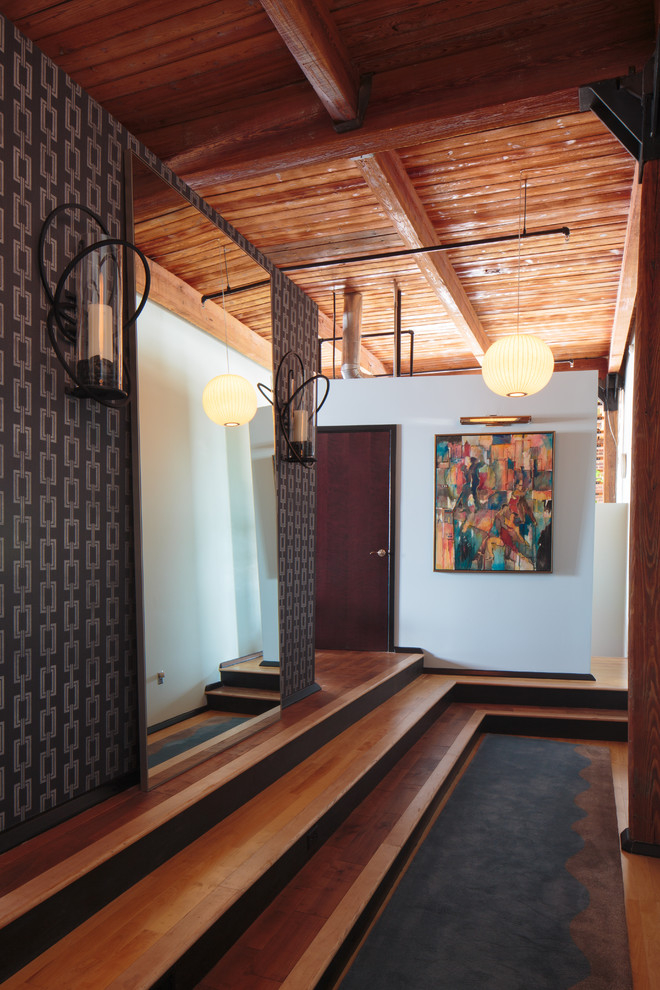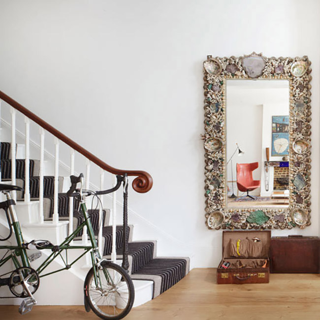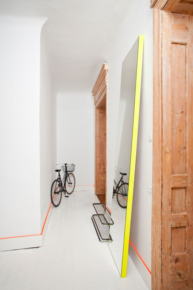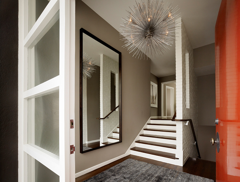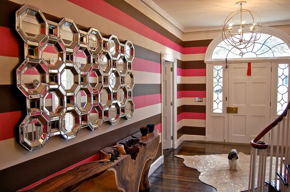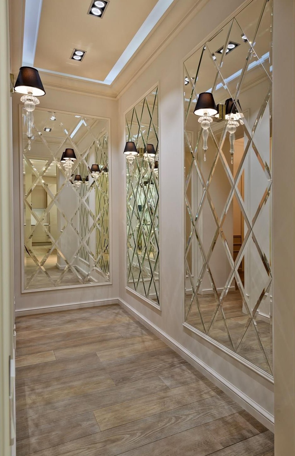Alguns designers instalam espelhos na parede. O vidro pode estar na superfície de uma parede ou em duas. Esse corredor de espelho parece muito impressionante, mas nem todos podem pagar por isso.