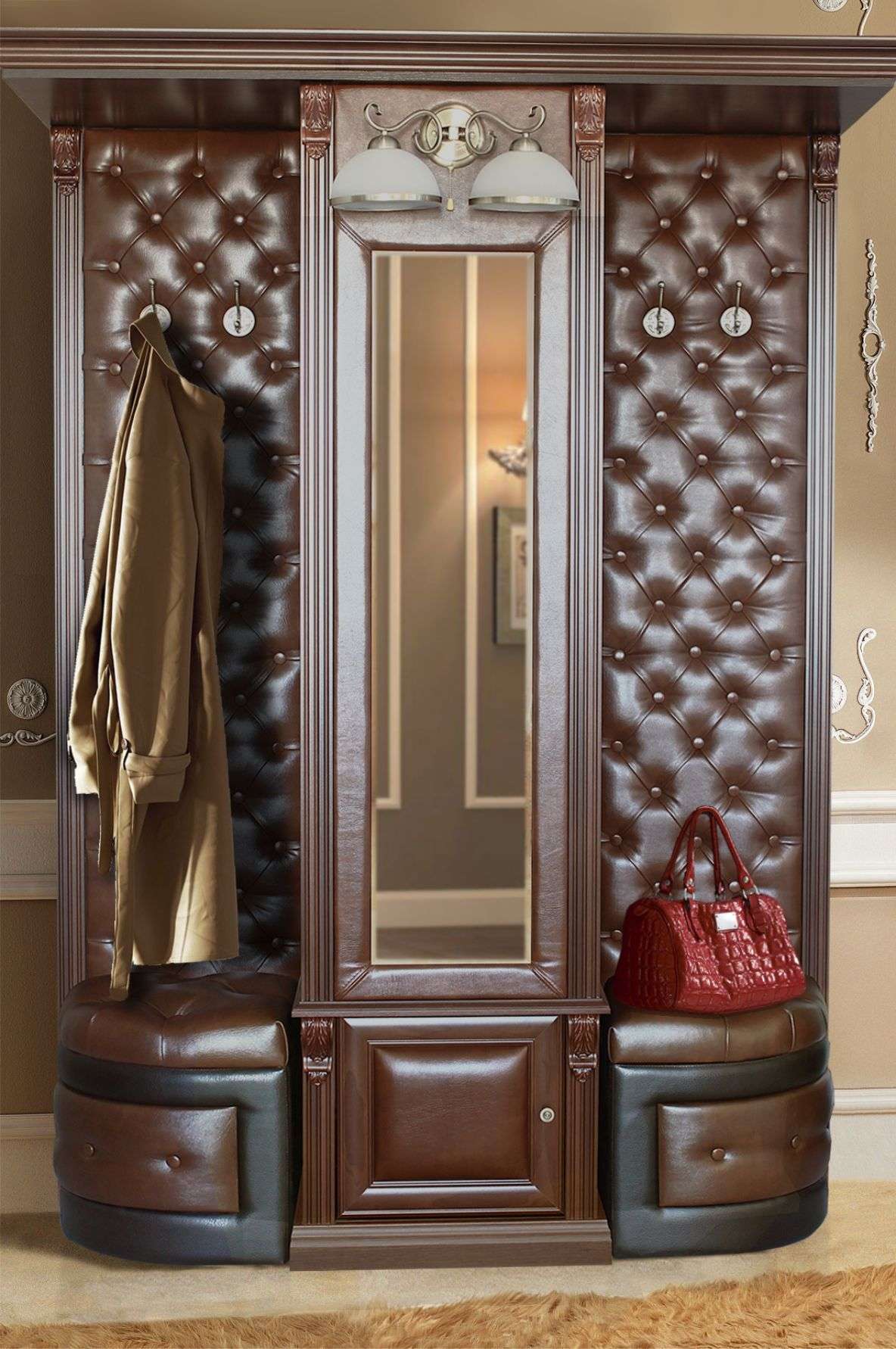 - MDF e aglomerado. Destes materiais modernos, o mobiliário de corredor é mais frequentemente feito. A superfície laminada é mais adequada para a fabricação de móveis confortáveis e práticos. Acabamento fachadas fachadas adequadas para um corredor com um interior clássico.