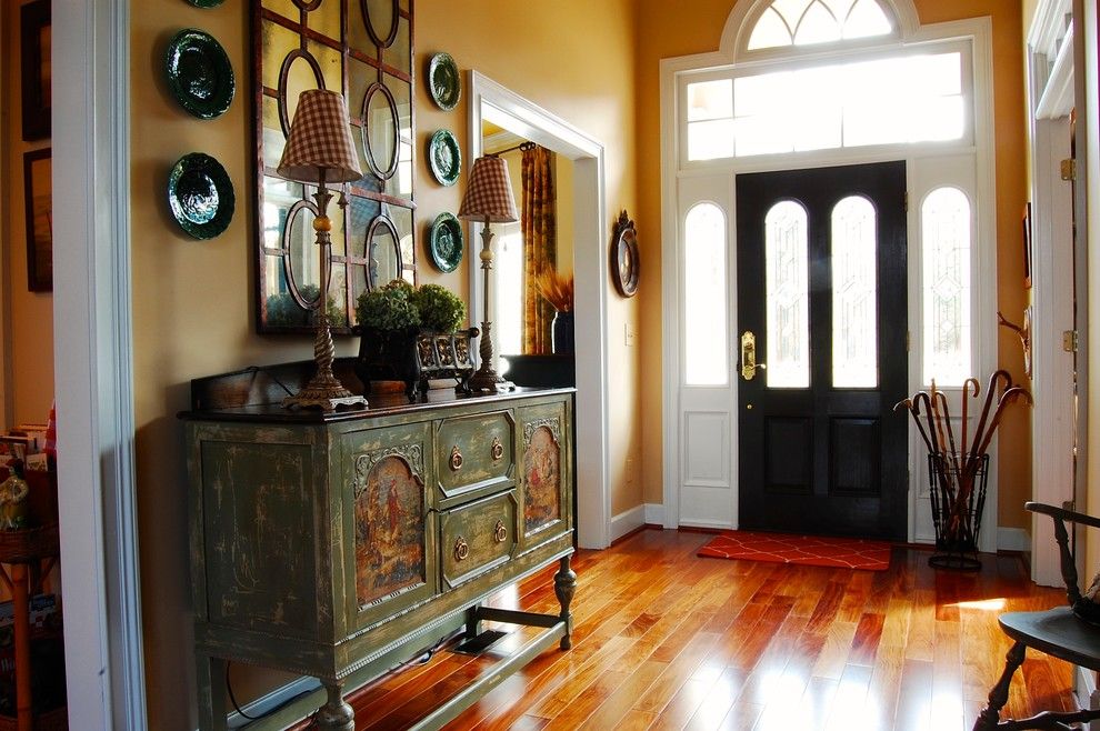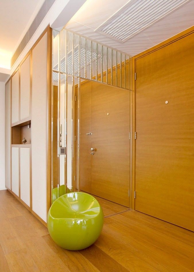 Na maioria das vezes, instale um espelho em uma das paredes do corredor. Você também pode colocar uma cômoda com uma porta espelhada. Colocar um objeto na frente da porta de entrada não é recomendado (com raras exceções).