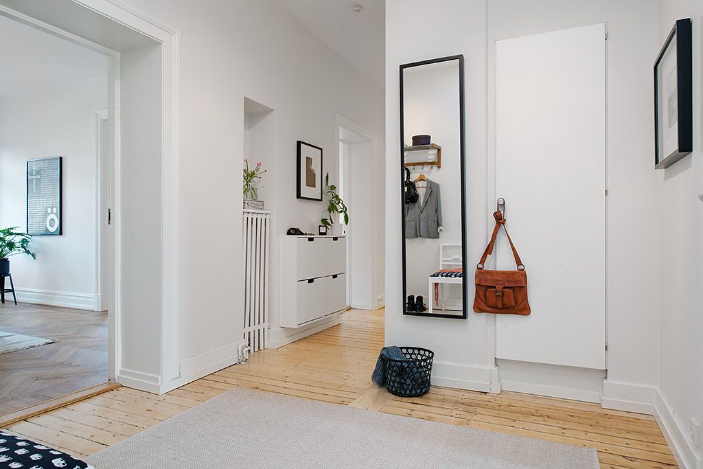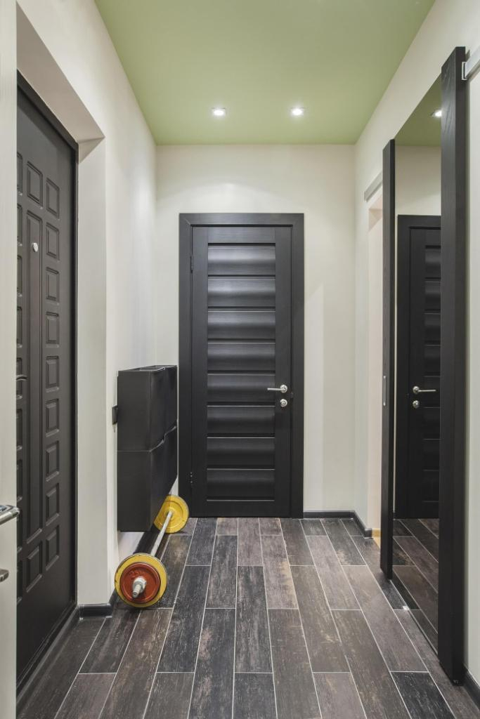 - Se o corredor tem muitas portas que são direcionadas para outras salas, um armário estreito e alto vai caber, que é colocado logo na entrada. Então ele não vai interferir, tocando a porta aberta.