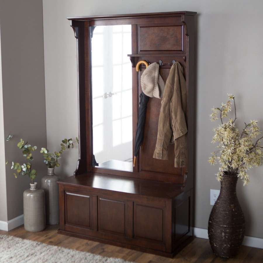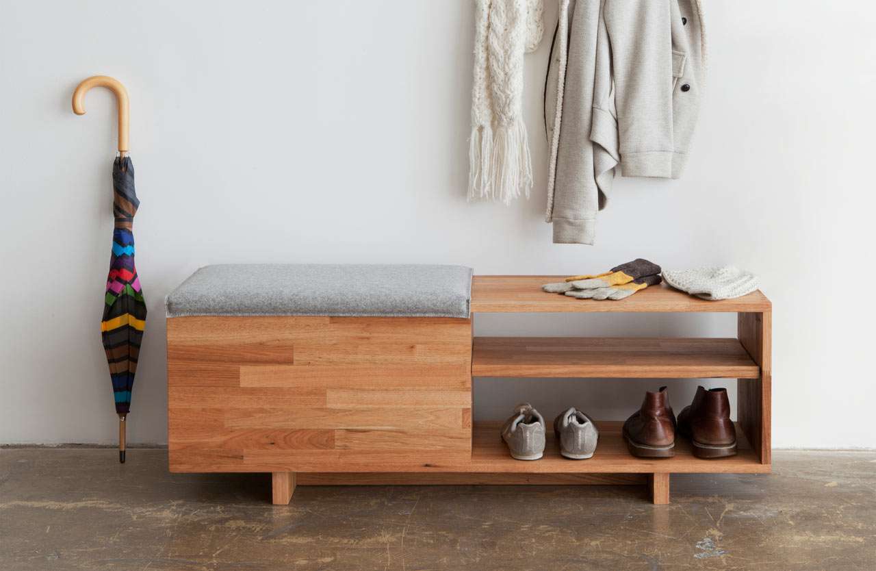 Há também sapatos com assento. Além de prateleiras para armazenar itens pequenos e sapatos, tais armários são muito convenientes de usar. Agora você não precisa usar botas ou amarrar cadarços em pé.