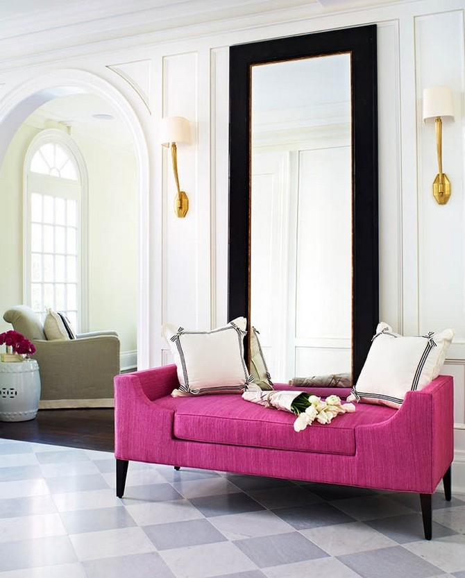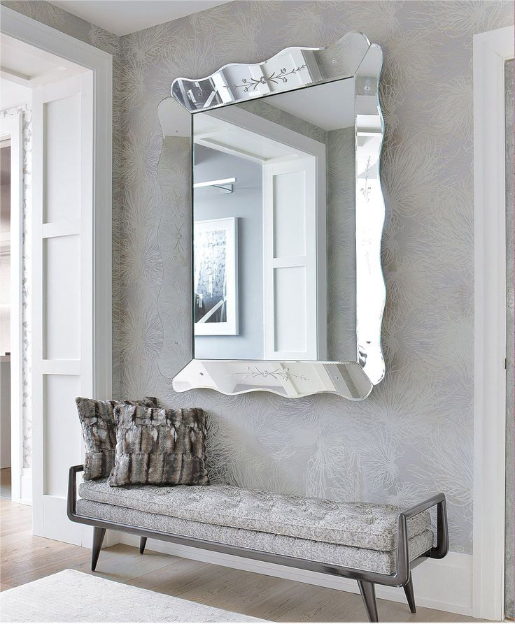 Tal espelho é usado não só em apartamentos, mas também em casas particulares. Ele é usado para os amantes da decoração arrojada da sala, parece brilhante e moderno. Muitas vezes usado em quartos em estilo clássico.. Além dos corredores, também pode estar localizado em o quarto, casa de banho sala, lobby ou escritório.