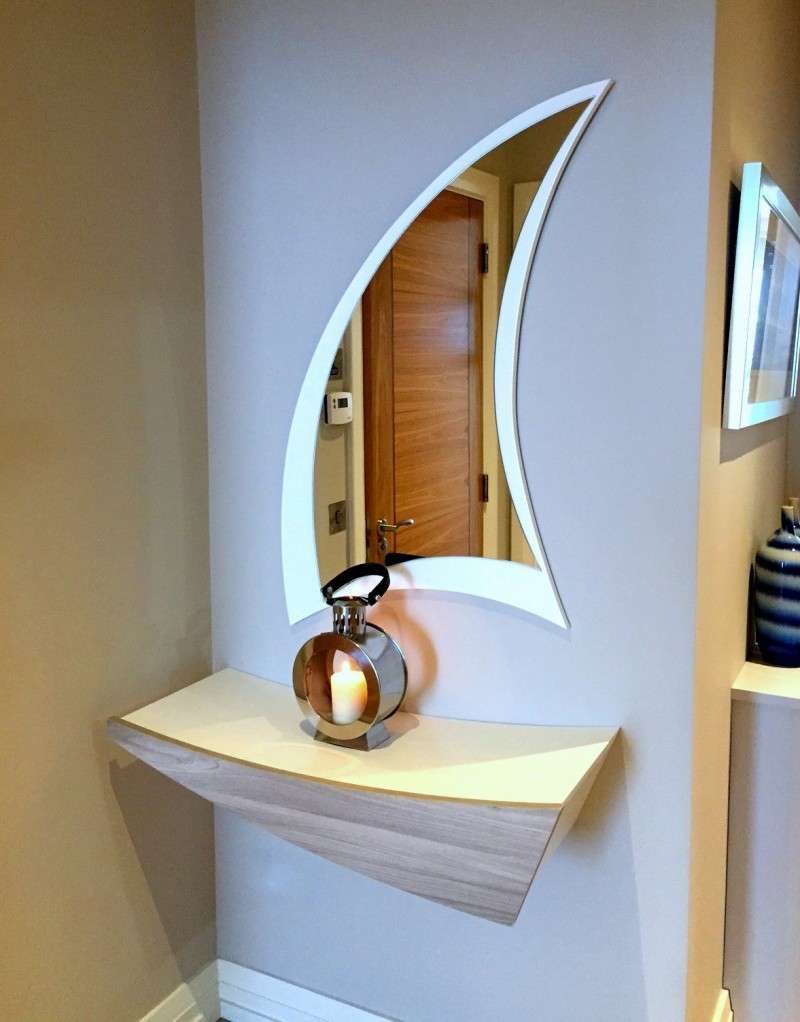 Você também pode usar um pequeno espelho para decoração, no qual você pode ver metade do seu reflexo. Normalmente eles têm uma forma oval, um quadro interessante e são decorados com belos acabamentos. Eles também costumam ter uma luz de fundo no lado e no topo.