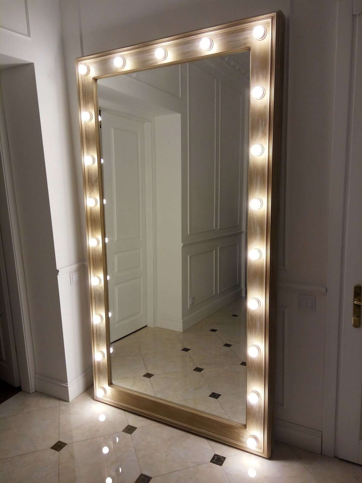 Iluminação para o corredor com um grande espelho é selecionado individualmente. Para uma lâmpada de iluminação, a parte superior da resma do espelho é excelente (mas somente se não estiver localizada acima de dois metros acima do nível do chão). Se for largo, a luz de fundo é colocada nas lâmpadas laterais (a mesma restrição com a altura está em vigor).