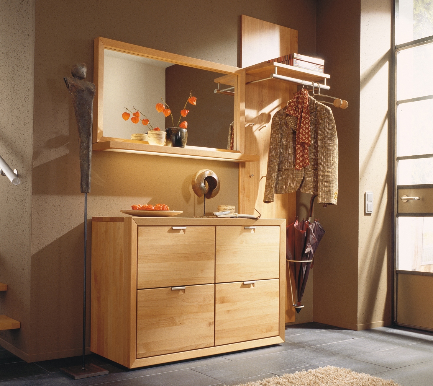 Baús que possuem compartimentos com prateleiras são adequados para guardar chaves, copos e esponjas para sapatos. Ele vai olhar muito bom mobiliário com um monte de assimétrica em relação uns aos outros gavetas para armazenar coisas pequenas e médias. Na parte inferior da cômoda geralmente há uma prateleira para sapatos. Existem também modelos criados exclusivamente para armazenar itens pequenos.
