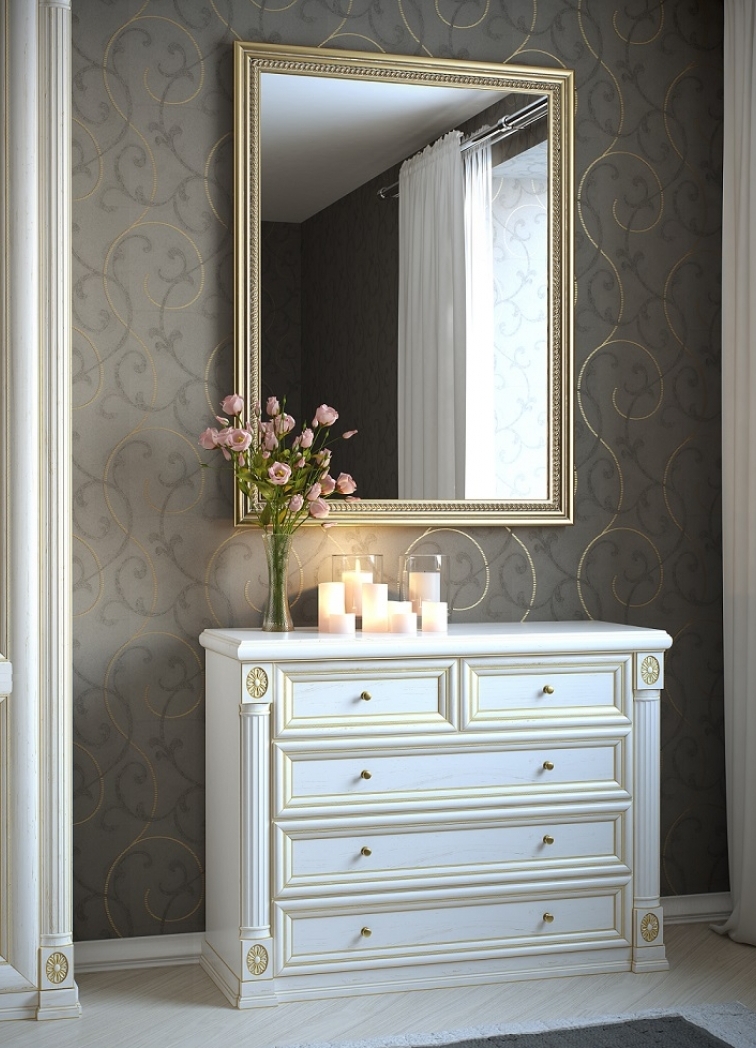 - Existem muitos tipos diferentes de aparadores de espelho. Para decorar o salão ajudará o quadro com a decoração original.