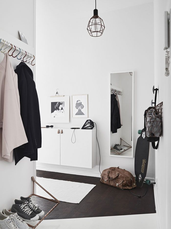 Outra opção interessante para o corredor é uma caixa de sapatos com cabides. É muito mais barato do que um guarda-roupa, mas ao mesmo tempo é possível armazenar alguns elementos de vestuário. Se tais sapatos tiverem um assento, então são mais convenientes na vida cotidiana. Essas caixas de sapatos não ocupam muito espaço e são adequadas para uso em pequenos corredores.