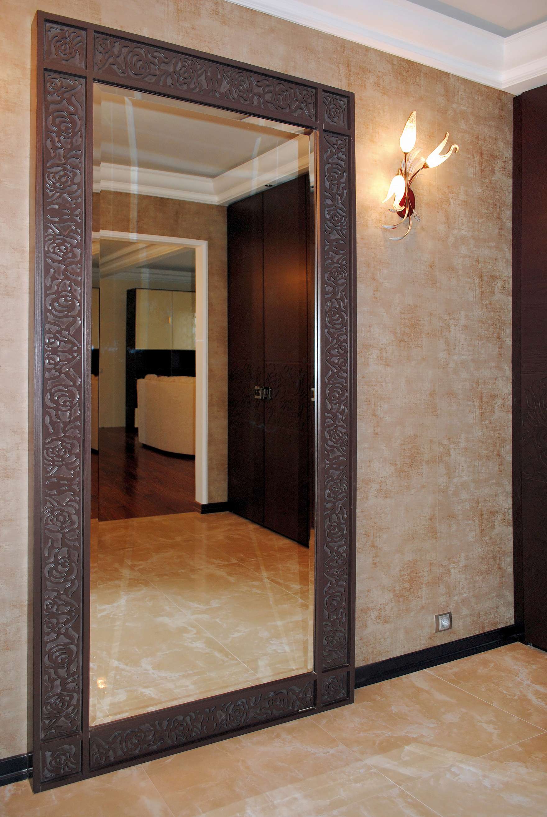 A armação de metal é adequada para o corredor em estilo retro (estilo antigo). A moldura de madeira esculpida vai ficar bem com uma grande cômoda.