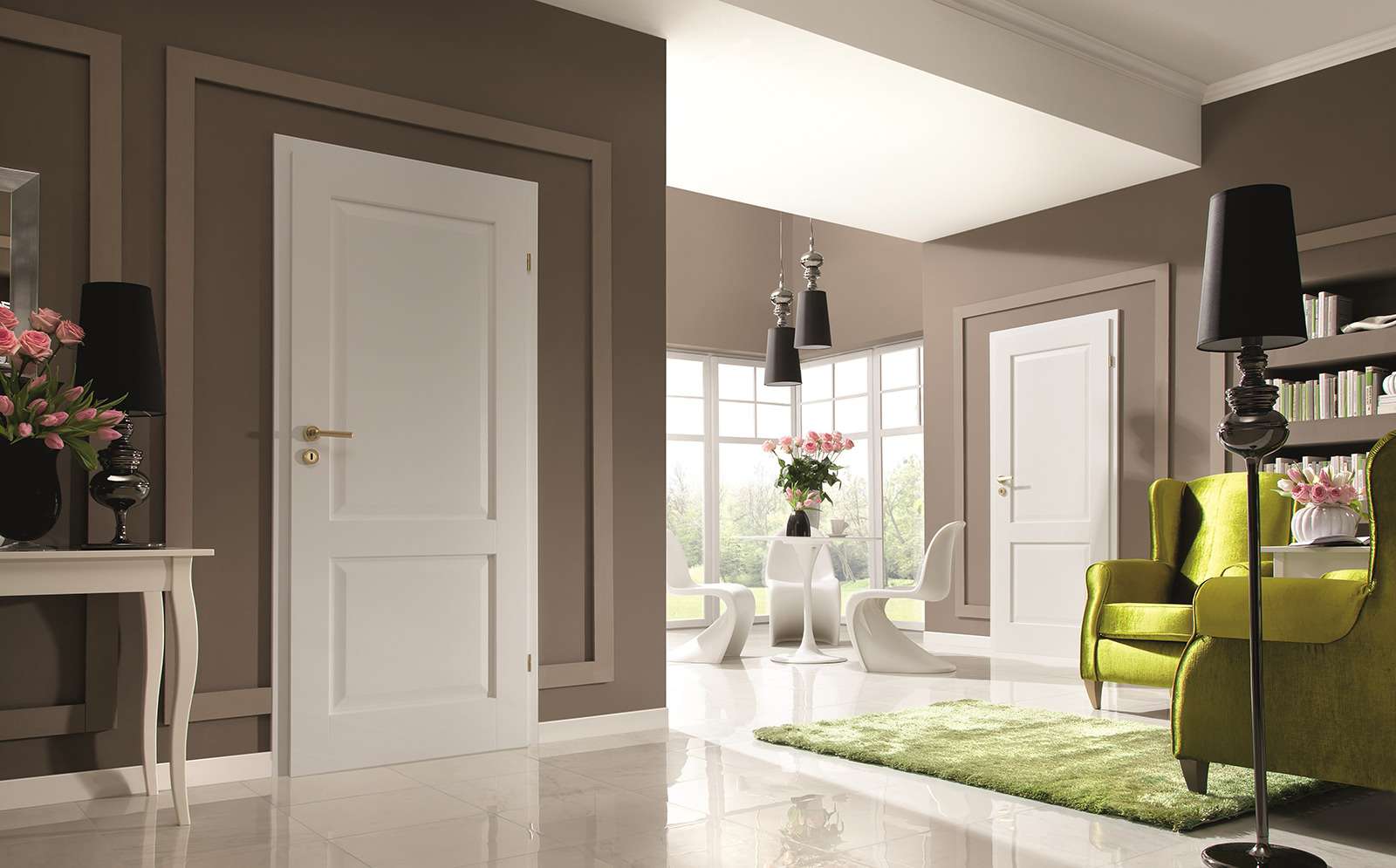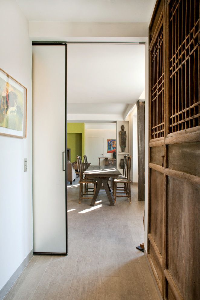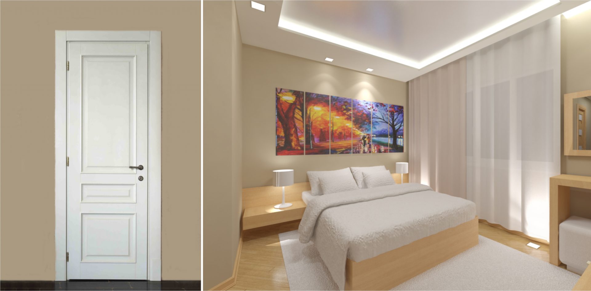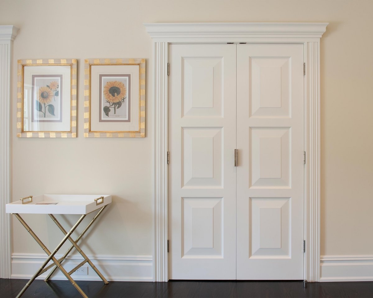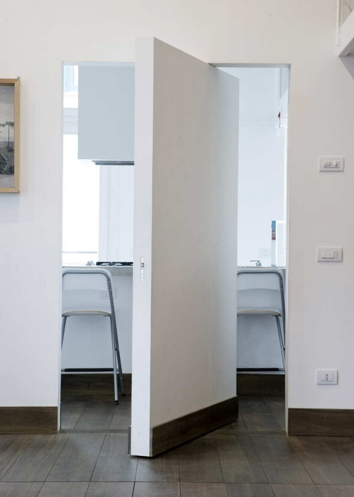 นักออกแบบชอบที่จะใช้ตัวเลือกนี้เมื่อสีของผนังตรงกับโทนสีของประตูพวกมันรวมเข้าด้วยกันทำให้เกิดความรู้สึกของผนังทึบที่ไม่มีประตู. ด้วยวิธีนี้ห้องดูกว้างขวางขึ้นเบาขึ้น