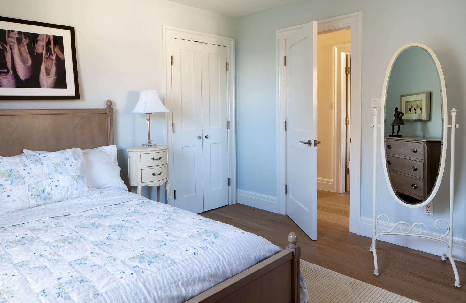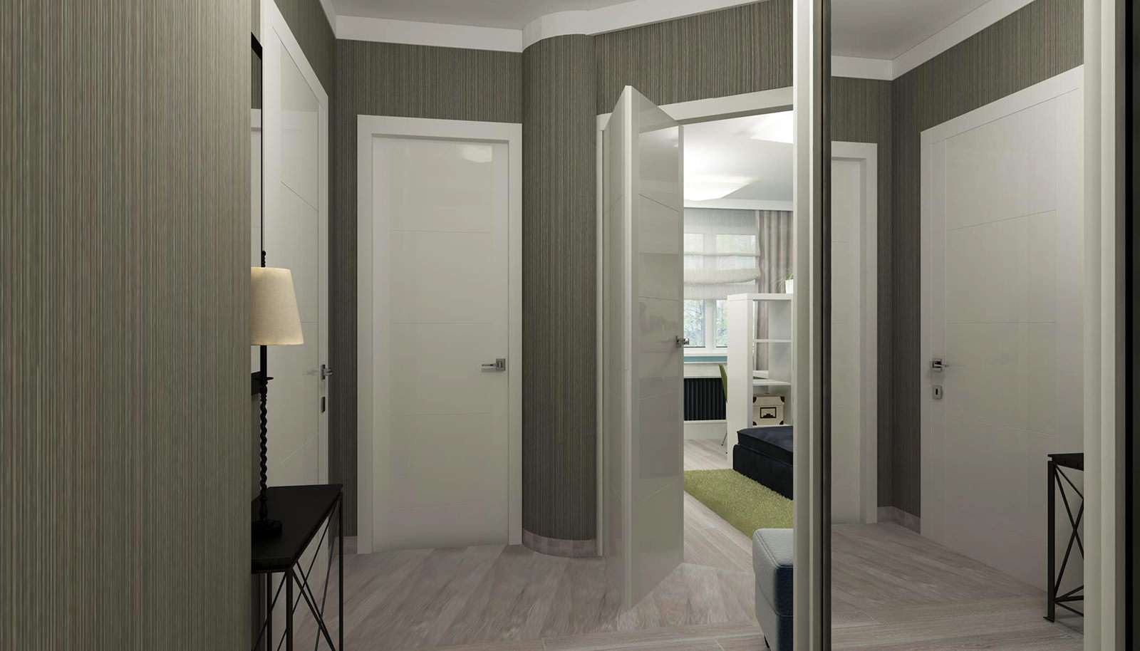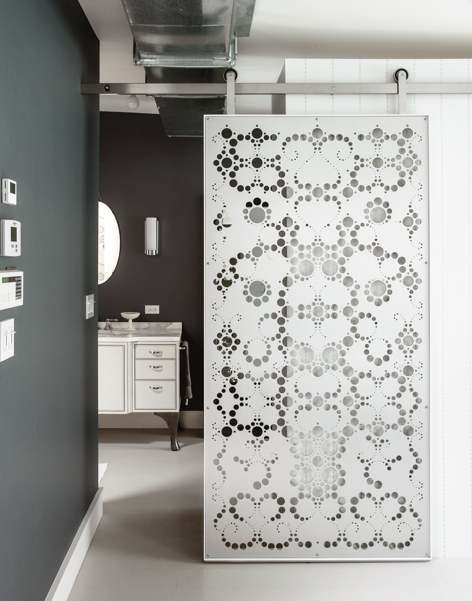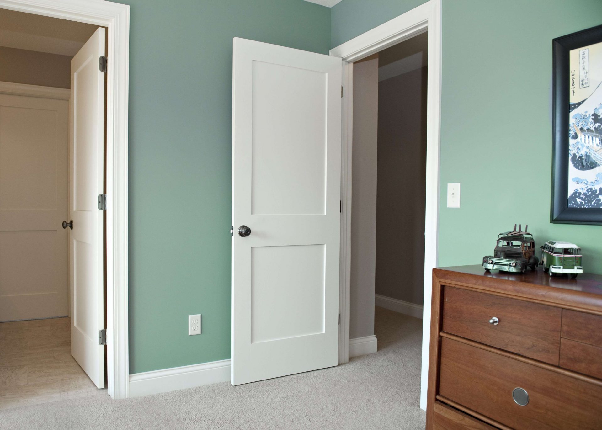 นักออกแบบชอบที่จะใช้ตัวเลือกนี้เมื่อสีของผนังตรงกับโทนสีของประตูพวกมันรวมเข้าด้วยกันทำให้เกิดความรู้สึกของผนังทึบที่ไม่มีประตู. ด้วยวิธีนี้ห้องดูกว้างขวางขึ้นเบาขึ้น