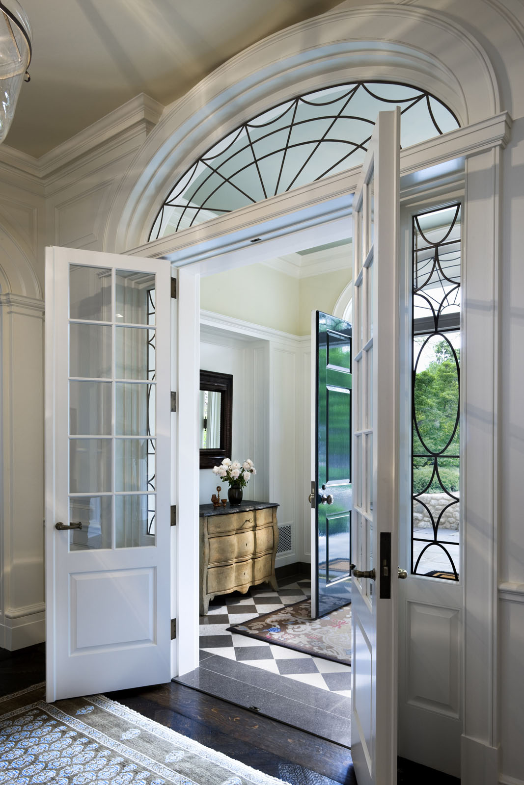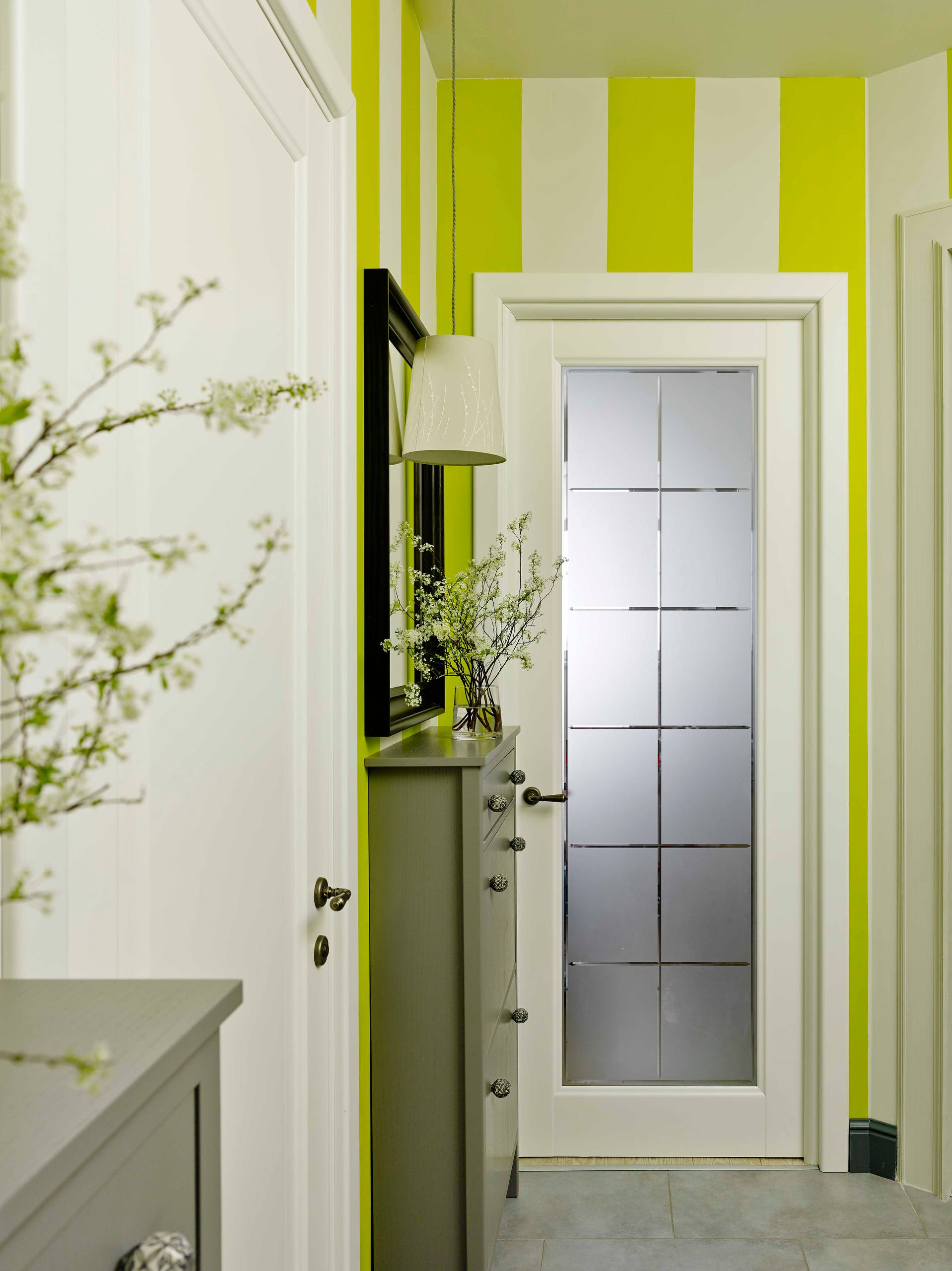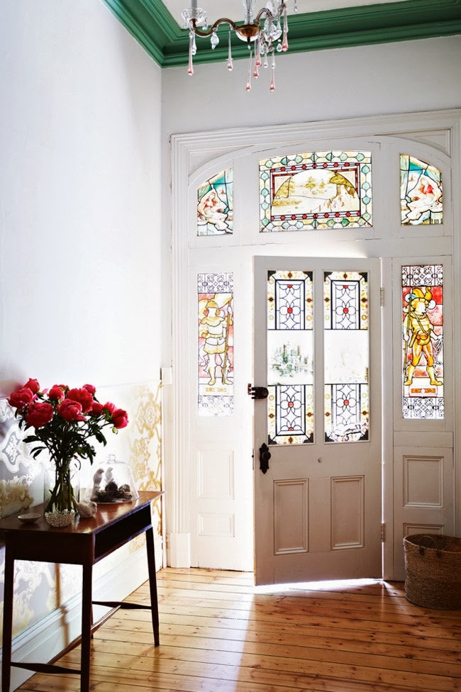 ประตูที่สว่างด้วยหน้าต่างกระจกสีนั้นเหมาะสำหรับห้องขนาดเล็ก