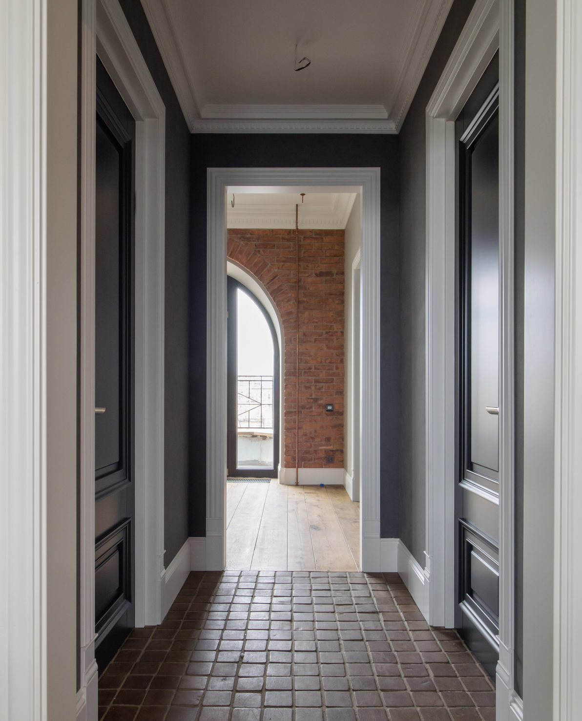 บ้านที่โถงทางเดินเล็กและมืดใช้ช่องเปิดพร้อมแหล่งกำเนิดแสงเพิ่มเติม ตัวเลือกนี้จะขยายห้องด้วยสายตา