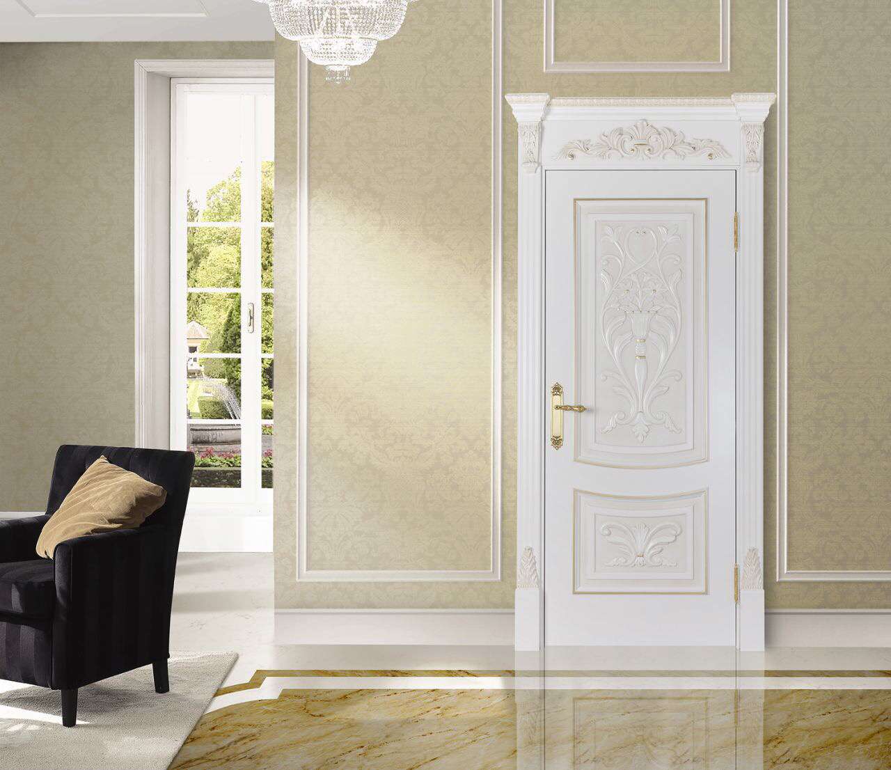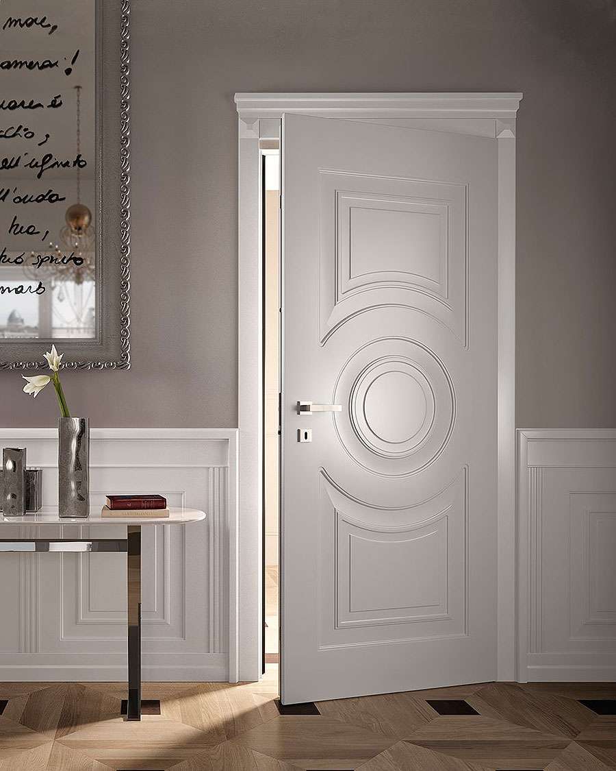 ในการออกแบบที่ทันสมัย ขาว ตอนนี้ประตูก็มีความเกี่ยวข้องเช่นเดียวกับในอดีตอันไกลโพ้น สีที่เป็นเอกลักษณ์รวมกับเฉดสีเกือบทุกชนิด ของเฟอร์นิเจอร์ผนัง เพศมันดูงานรื่นเริงและความงามเสมอ