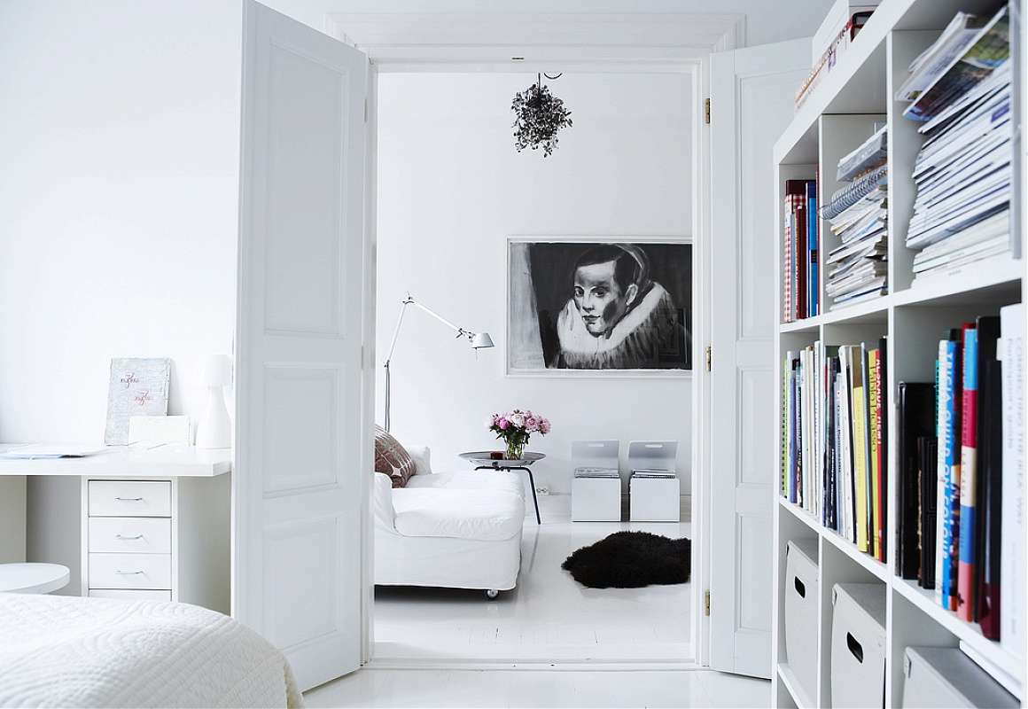 ช่องสีขาวถูกใช้ในหลายรูปแบบสไตล์สแกนดิเนเวียนที่ทันสมัยจะให้ความรู้สึกโปร่งสบาย สีสันที่ยอดเยี่ยมของไม้ธรรมชาติจะเหมาะกับพวกเขาจะเน้นความขาวของผนังและประตู