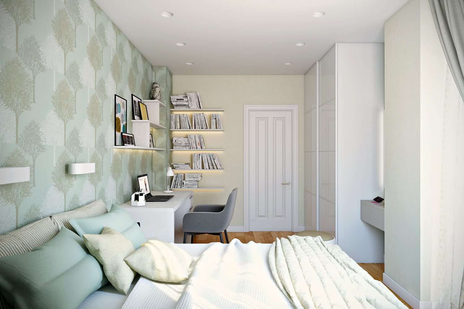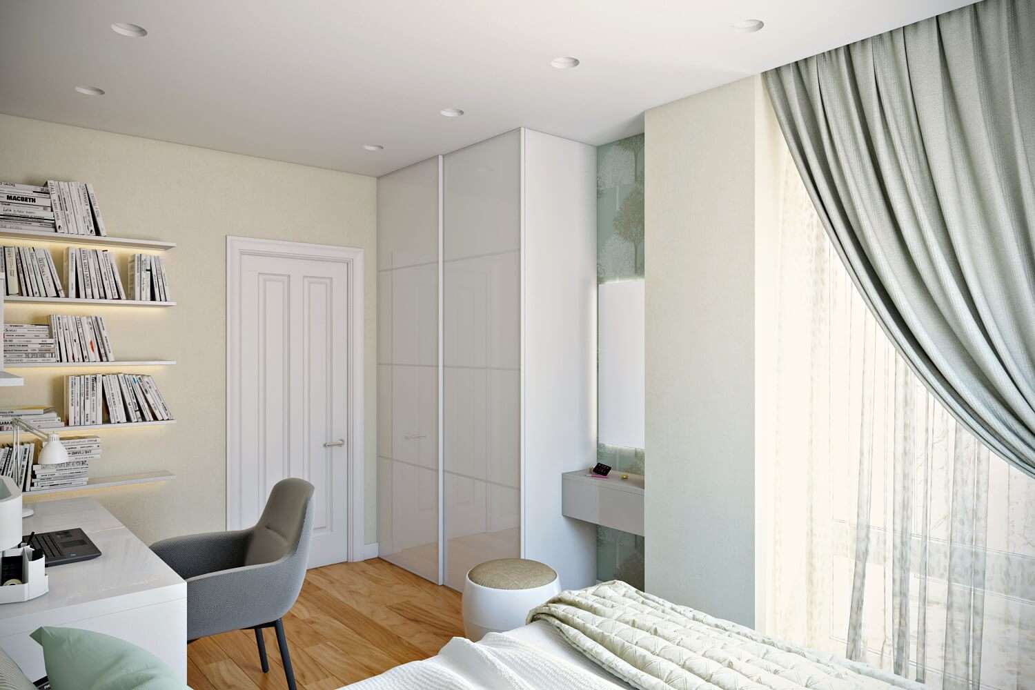 - ในห้องที่มีพื้นสีขาวคุณสามารถดูเฟอร์นิเจอร์ที่สวยงามด้วย สีเขียว สี ห้องแบบนี้ดูสดใหม่สะดวกสบายเสมอ ตัวเลือกนี้ใช้ในห้องพักผ่อน