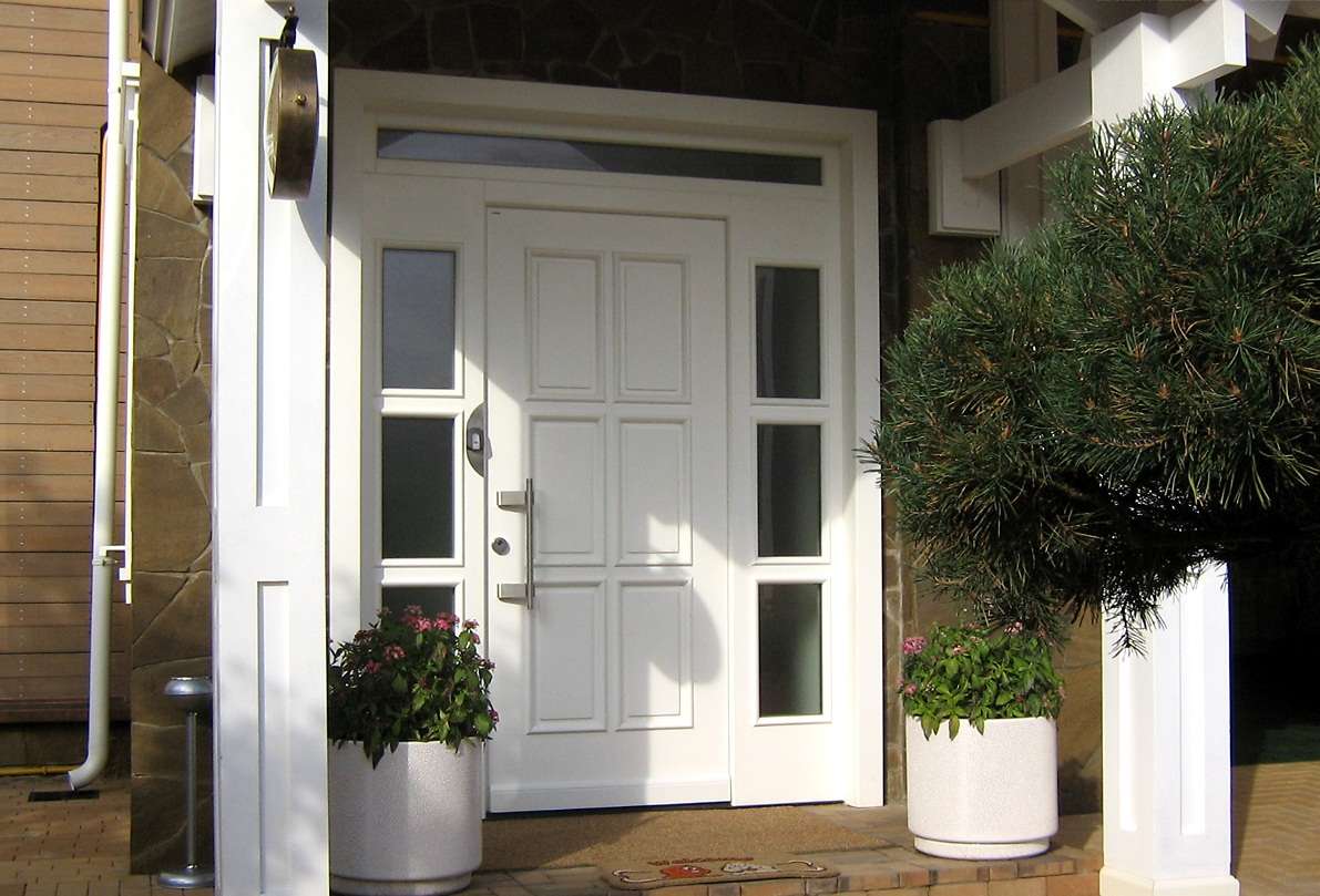 มันสำคัญมากที่จะต้องพิจารณาเมื่อเลือกรูปแบบการออกแบบและรูปแบบของบ้านสถาปัตยกรรม จากนั้นประตูจะประสานเข้ากับผนังของอาคารอย่างกลมกลืน แผงประตูสีขาวที่มีผนังเบาดูซับซ้อน สู่บ้านในรูปแบบของโปรวองซ์หรือคันทรี่ที่ยอดเยี่ยมด้วยการออกแบบประตูด้วยกระจกหรือกระจก ดูรูปแบบสวยงามด้วยหน้าต่างบานใหญ่