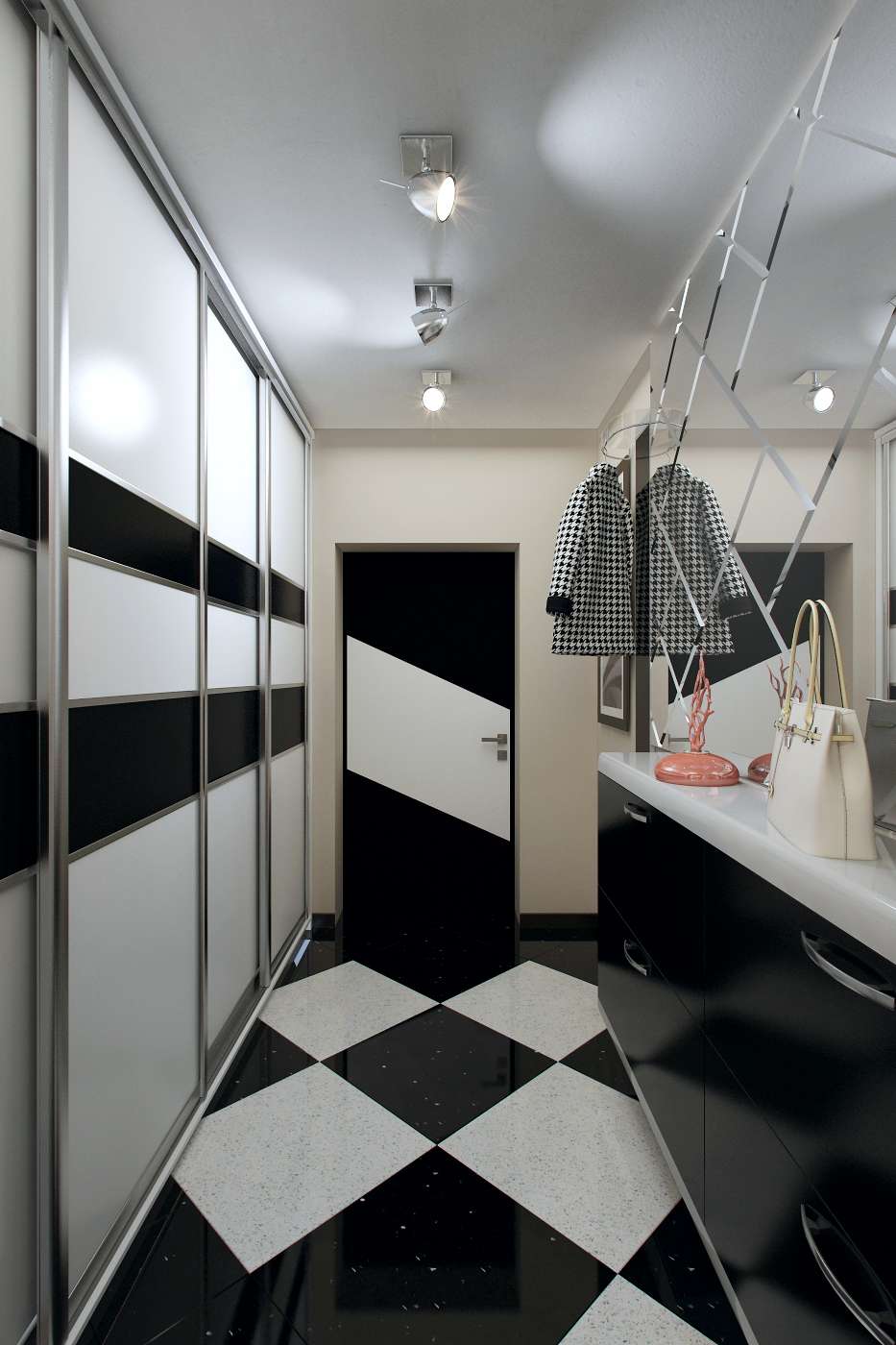 สำหรับห้องโถงขนาดเล็กเป็นสิ่งจำเป็น ศิลปะ ในเฟอร์นิเจอร์ ทางออกที่ดีพื้นผิวมันวาว