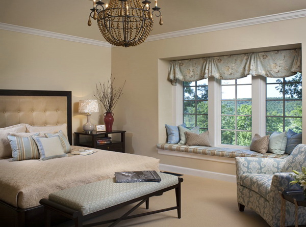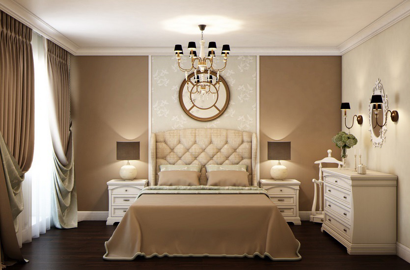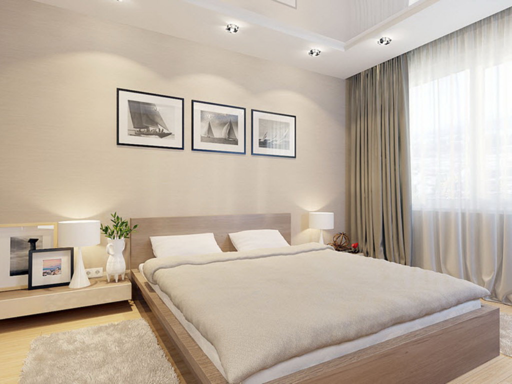 ผ้าม่านสำหรับห้องนอนสามารถมีเฉดสีต่าง ๆ ได้สิ่งสำคัญที่พวกเขารวมกับสไตล์การตกแต่งภายในและมีความหนาแน่นสูงเพื่อให้ในตอนเช้าแสงแดดจะไม่เข้ามาในห้อง