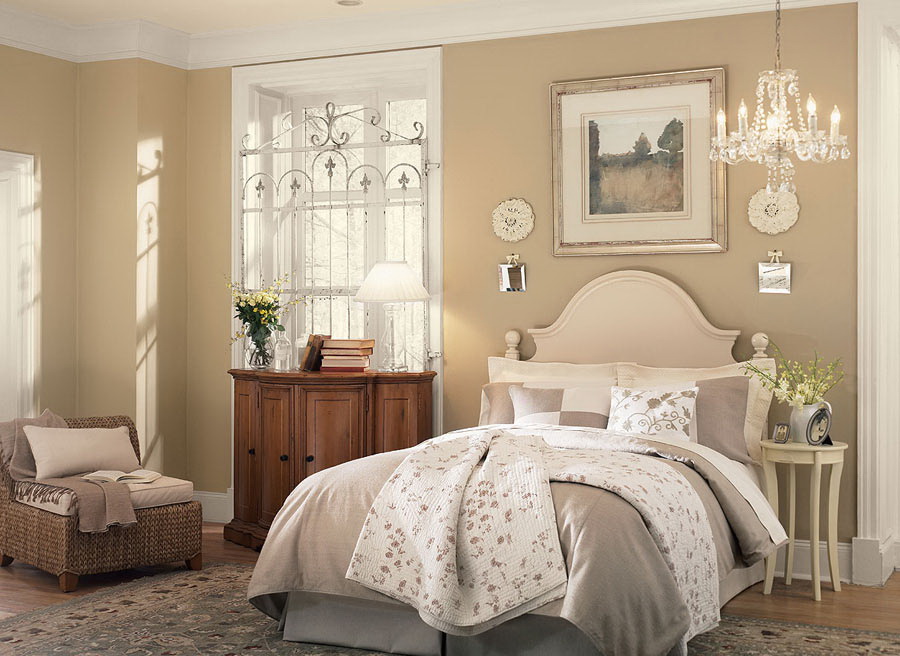 สีของเฟอร์นิเจอร์ในห้องนอนน่าจะสบาย เพื่อเน้นความอ่อนโยนและความสว่างของบรรยากาศควรให้ความสำคัญกับแสงหรือสีขาวในหูฟัง เฟอร์นิเจอร์สีเข้มขนาดใหญ่หรือเฟอร์นิเจอร์ที่มีสีอิ่มตัวจะรับรู้ได้ค่อนข้างกลมกลืน