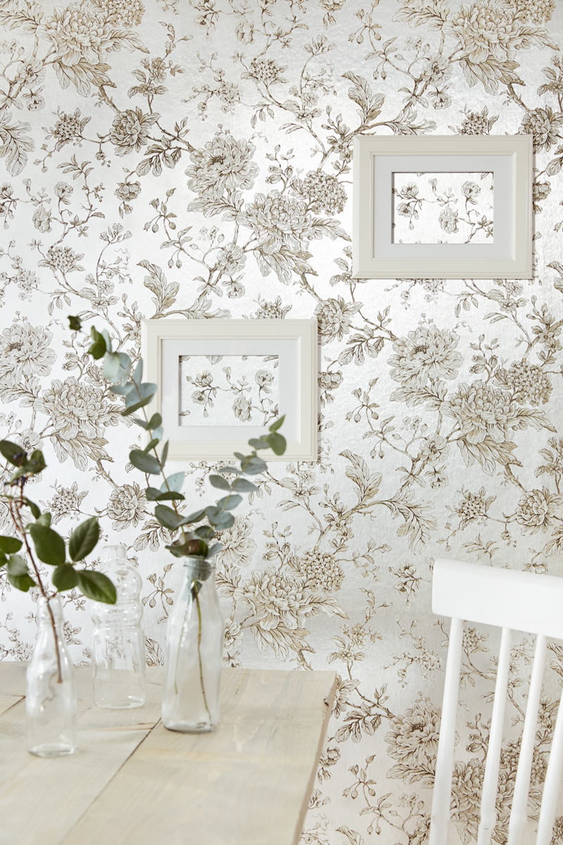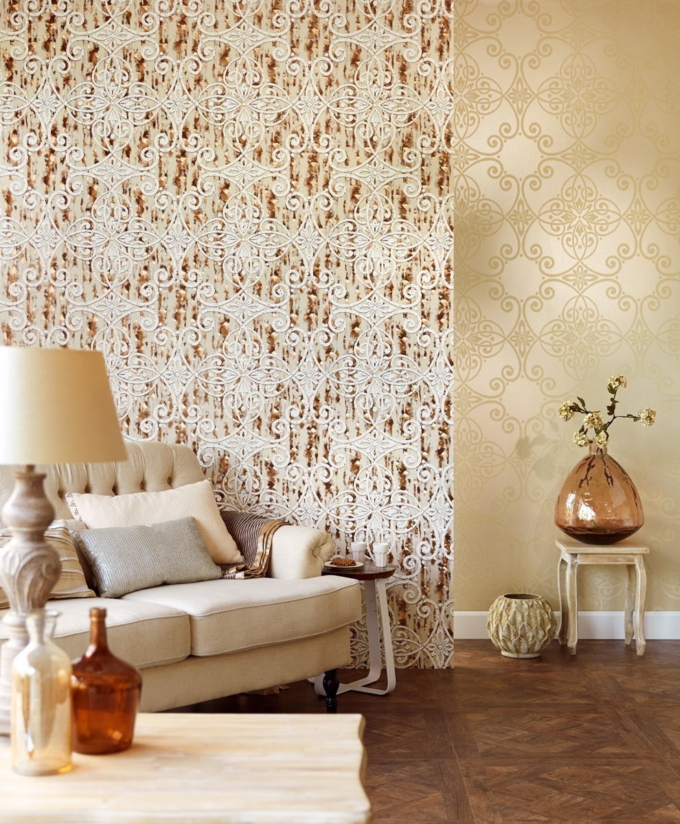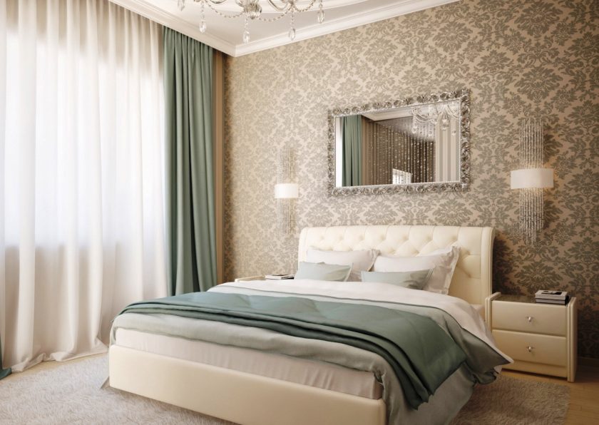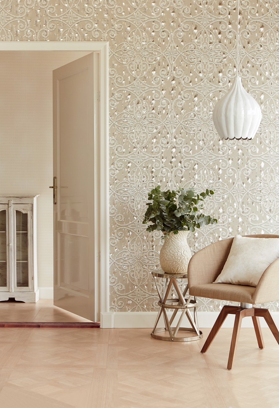 วอลล์เปเปอร์สีเบจที่มีรูปแบบพอดีกับห้องใดก็ได้และให้ความโรแมนติกและความสว่าง
