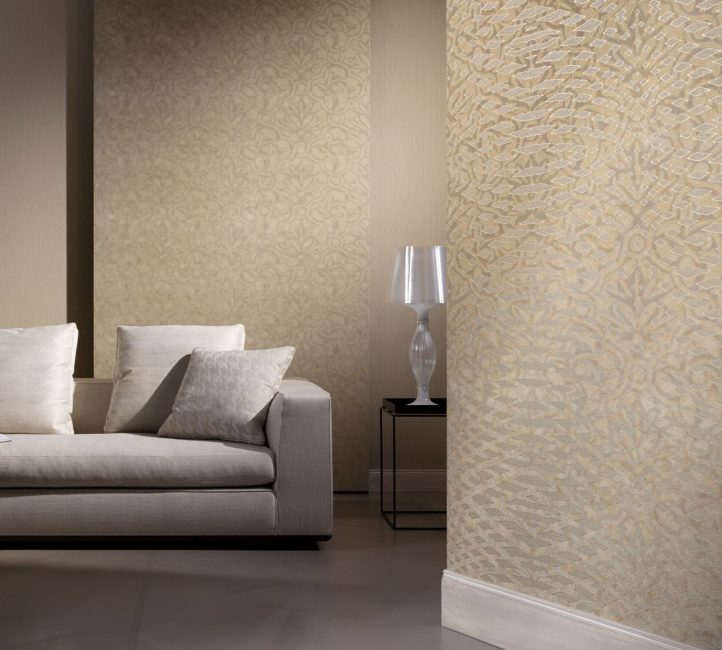 - ของเหลว - การรวมกันของคุณภาพของภาพวาดและตกแต่ง ปูนปลาสเตอร์. เมื่อติดกาวพวกเขาไม่มีตะเข็บไม่มีฝุ่นสะสมพวกเขามีพื้นผิวลึกที่ช่วยในการกระจายและเน้นแม้สีเบจที่สว่างที่สุด