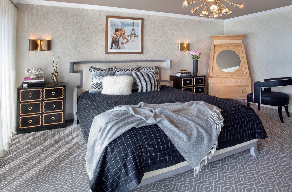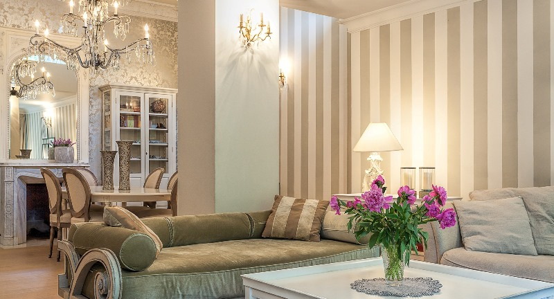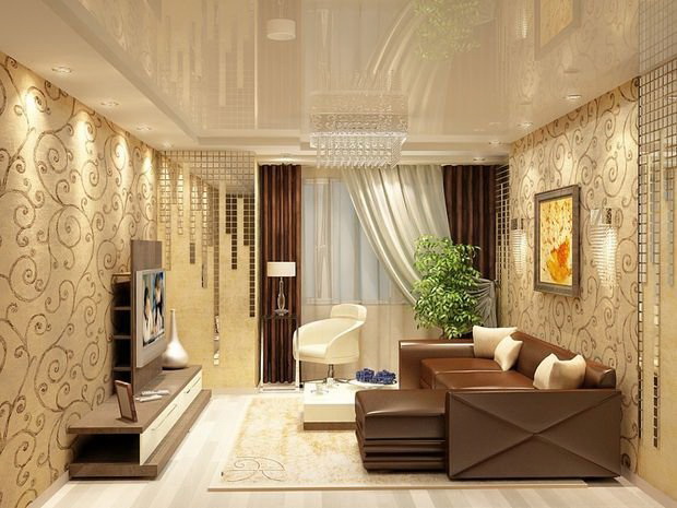 ใช้ตกแต่งรูปทรงเรขาคณิตเพื่อเพิ่มพื้นที่ของห้องขนาดเล็กและทำให้เพดานสูงขึ้น สำหรับห้องขนาดเล็กผู้ออกแบบควรเลือกวอลล์เปเปอร์ลายสีเบจอ่อนและในห้องที่มีพื้นที่ขนาดใหญ่คุณควรเลือกเฉดสีที่เข้มกว่า