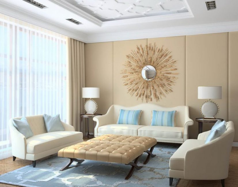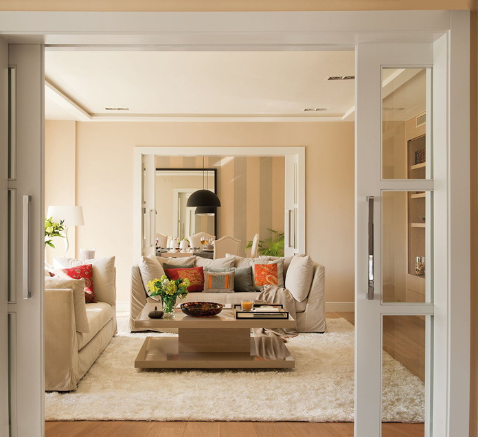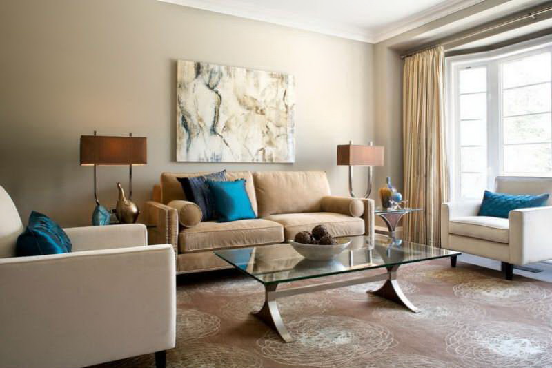 หลายห้องสร้างห้องสำหรับแขกในโทนสีเบจ นักออกแบบแนะนำให้ใช้องค์ประกอบตกแต่งเพิ่มเติมเพื่อสร้างสำเนียงที่สดใสและให้สไตล์ห้องเช่น: