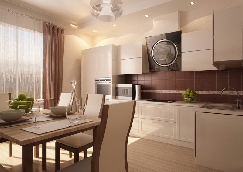 ผ้าม่าน ในห้องครัวดังกล่าวควรขอภายใต้กฎของการเลือกเฟอร์นิเจอร์
