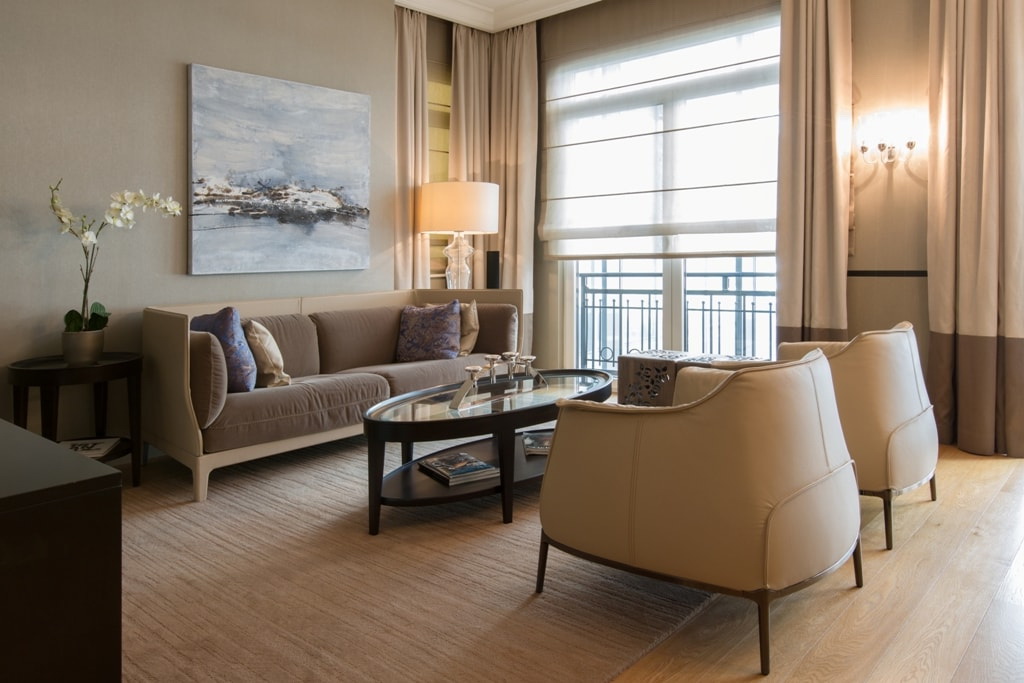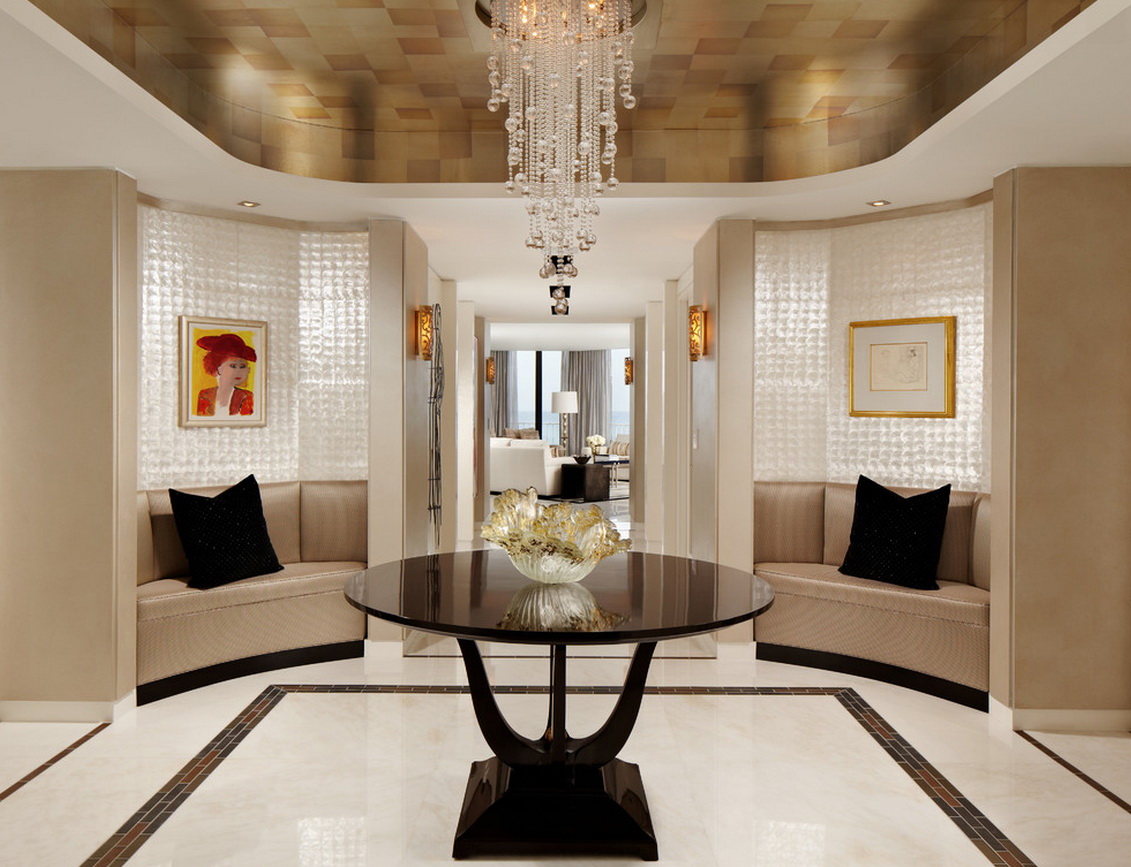 แม้ว่าจะใช้เพียงมาตราส่วนเดียวในการสร้างการตกแต่งภายในห้องจะอบอุ่นสบายและในเวลาเดียวกันก็มีสำเนียงที่มีสไตล์