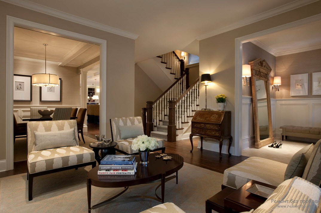 ตาราง, ตู้ และรายการอื่น ๆ สามารถอยู่ในระดับความมืดและแสง ควรเลือกเฟอร์นิเจอร์ที่มีการตกแต่งตามความสว่างของผนัง, สไตล์การตกแต่งภายใน, สี เพศบางครั้งแม้แต่บาน ผ้าม่าน. โซฟา อาจเป็นสีอ่อนสีเข้มหรือสีเข้ม