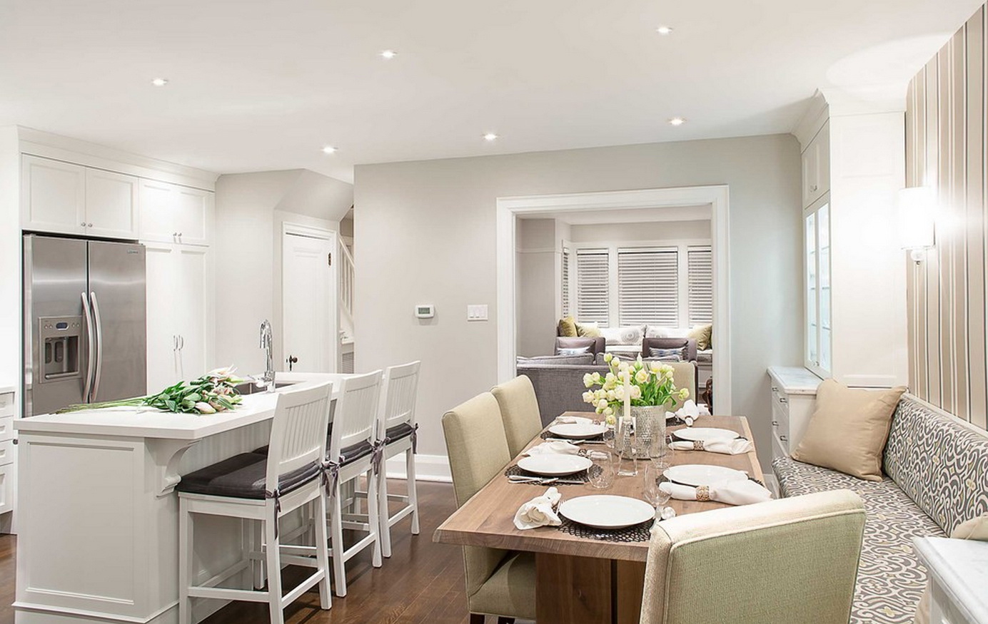 หากห้องนั้นมีขนาดที่ไม่ได้มาตรฐานเนื่องจากการวางตำแหน่งของสำเนียงที่ถูกต้องระดับสีเทาสีเบจจะช่วยให้ห้องดูดีขึ้น ตัวอย่างเช่นหากห้องกว้างเกินไปภาพพื้นหลังเบจสีเทาสีเบจจะอนุญาตให้แคบลงสายตาจะกลายเป็นรูปสี่เหลี่ยมมุมฉาก