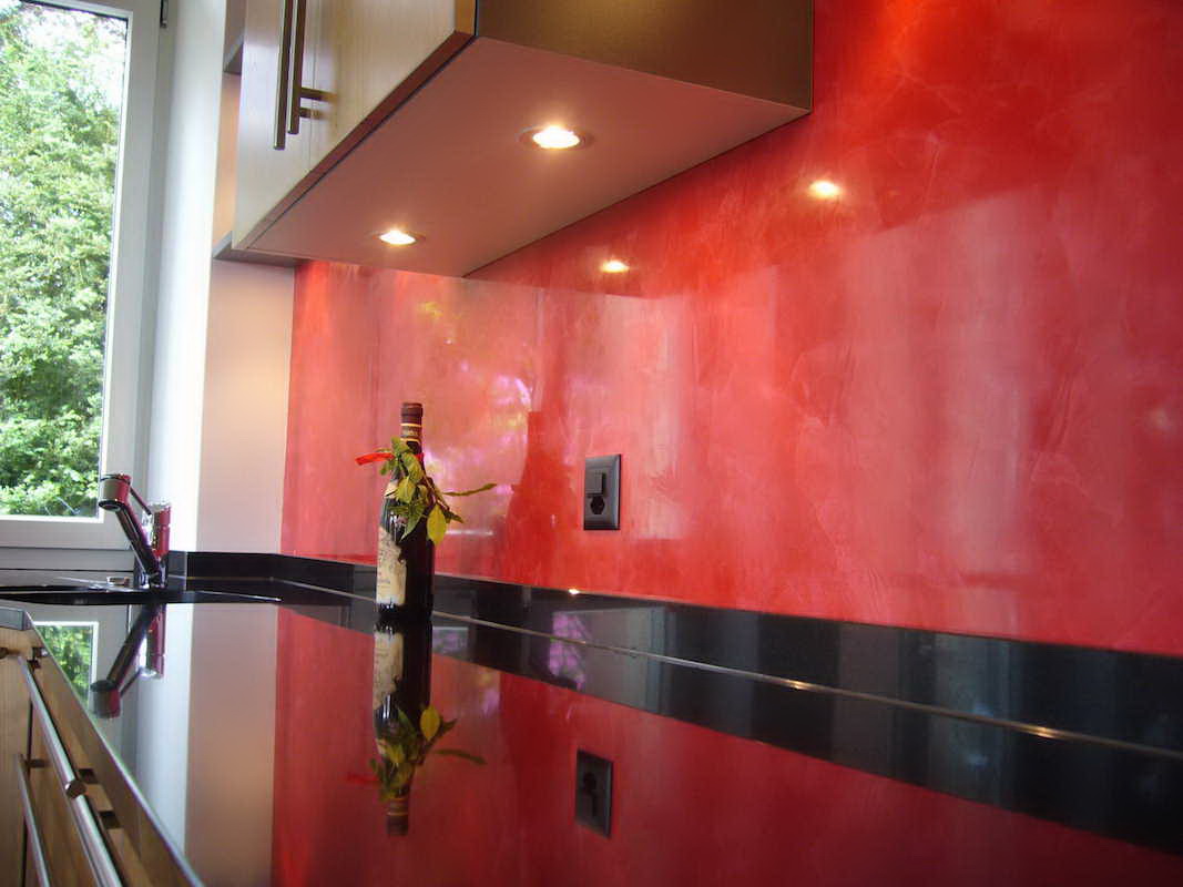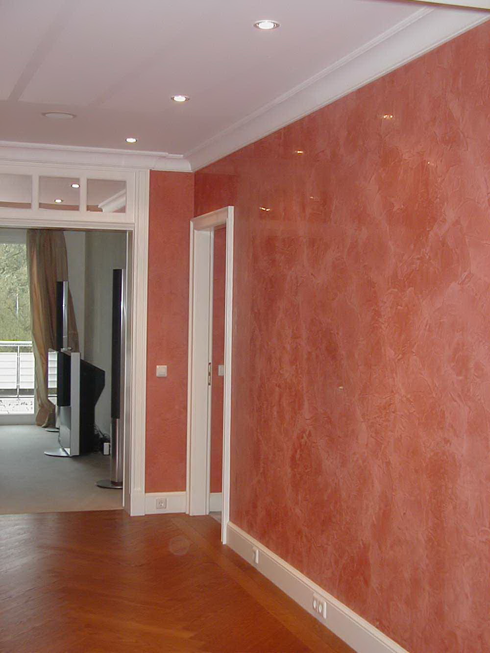พลาสเตอร์ "Venetian" เป็นงานตกแต่งผนังชั้นยอด หินอ่อนเลียนแบบเติมห้องด้วยความหรูหราและความมั่งคั่ง สามารถเคลือบและมันวาว เงามีความสวยงามในห้องนั่งเล่นและแบบด้านเหมาะสำหรับห้องนอน