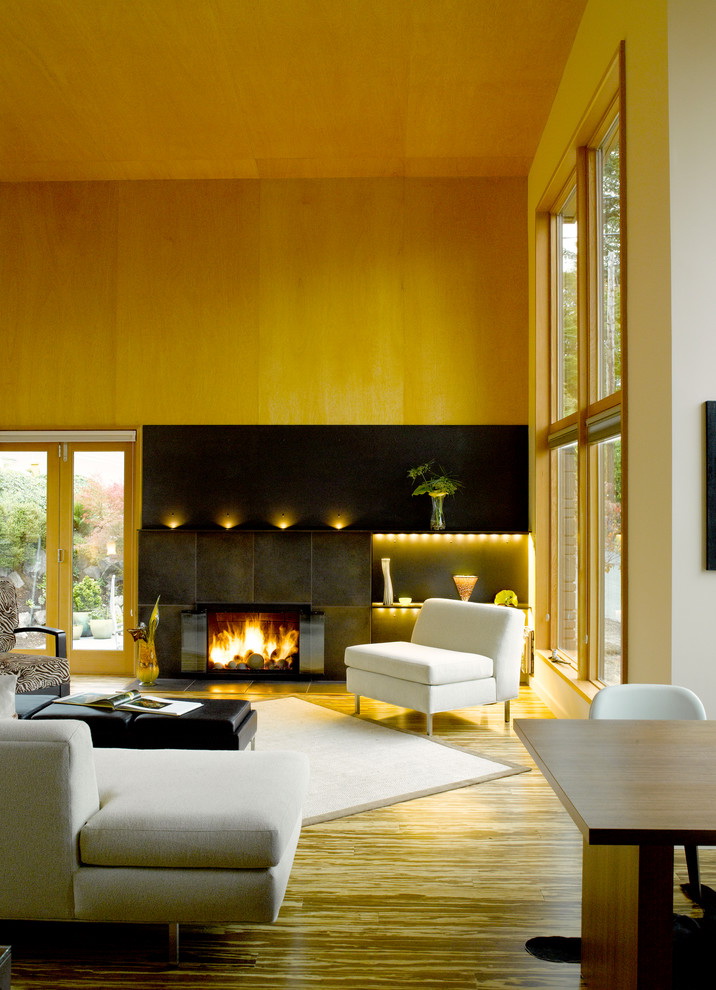 การตั้งค่านี้ไม่พอดีกับห้องใด ๆ ตัวอย่างเช่นใน ห้องนอน หรือในสำนักงานก็อาจดูเสแสร้งก็จะลดพื้นที่มองเห็นและสร้างแรงกดดันต่อบุคคล แผงไม้พื้นผิวของเฉดสีอ่อนเหมาะสำหรับห้องนั่งเล่น เด็ก ๆห้องนอนผู้ใหญ่