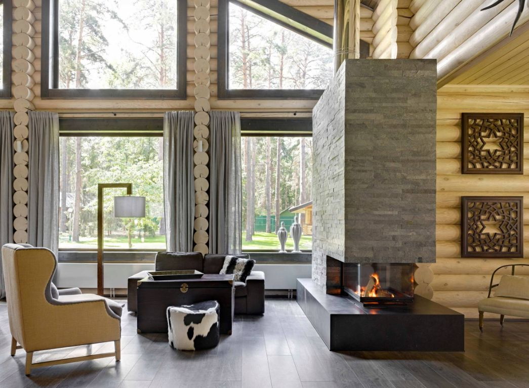 ด้วยเฟอร์นิเจอร์ไม้ที่มีคุณภาพกลมกลืนกันอย่างสมบูรณ์แบบ เตาผิง. ดังนั้นในบ้านของตัวเองที่มีพื้นที่ของห้องค่อนข้างใหญ่คุณสามารถวางเตาผิงหินเทียม