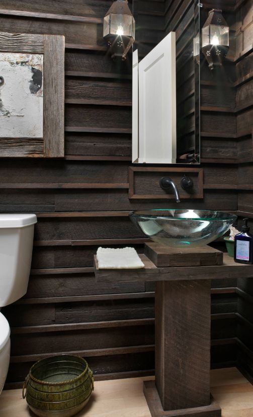 ไม้ที่ไม่เหมาะกับวัสดุห้องน้ำมักดูสดใสและเป็นต้นฉบับในห้องนี้ ไม่จำเป็นต้องใช้วัสดุจากธรรมชาติในการทำให้มีชีวิตชีวา คุณสามารถใช้ไม้หลายสำเนียง