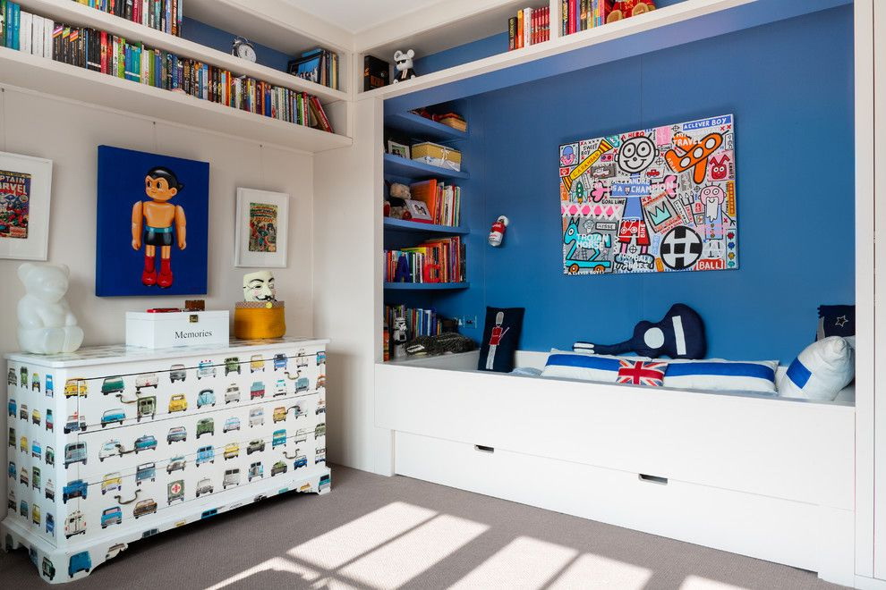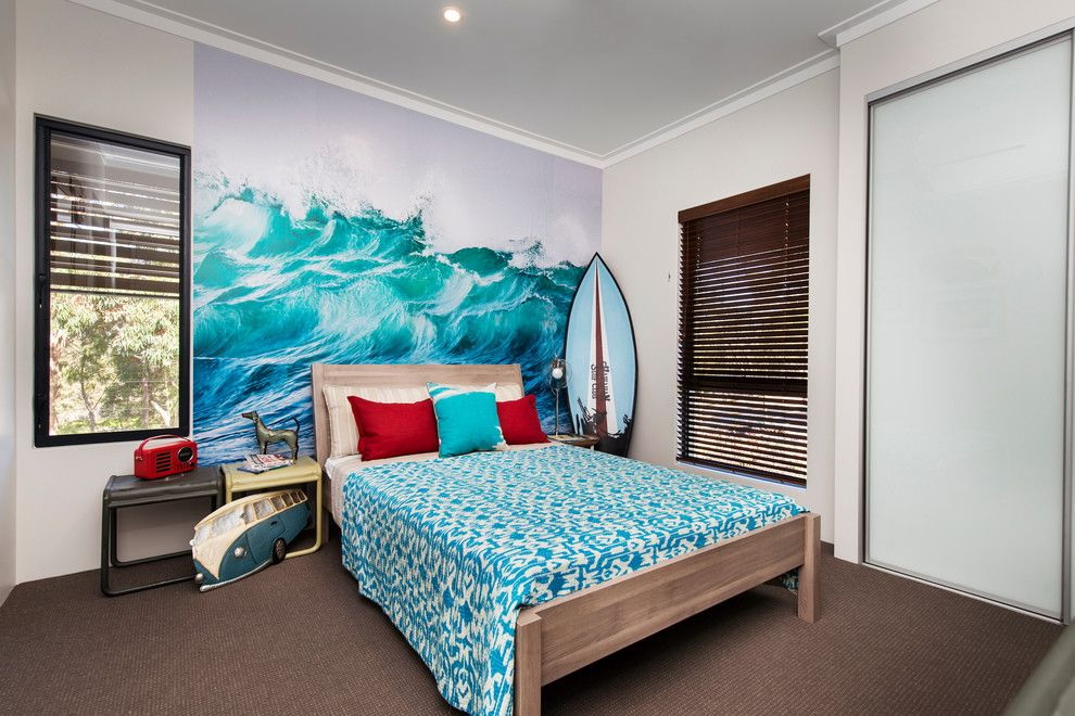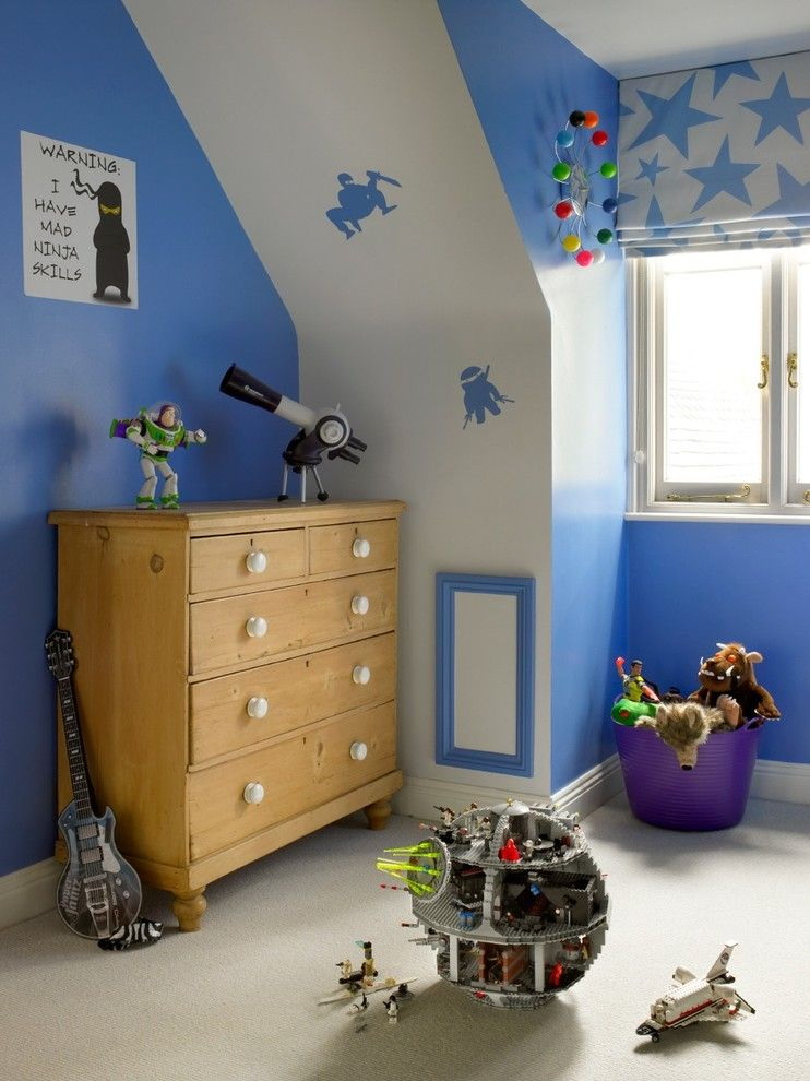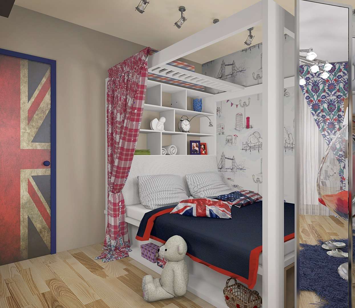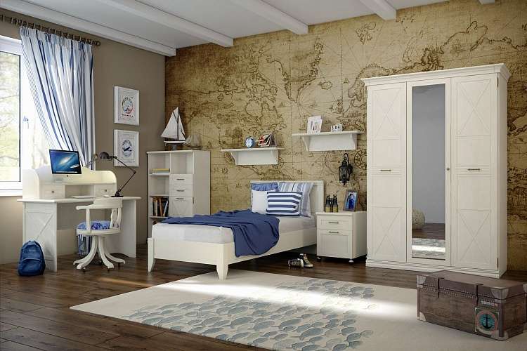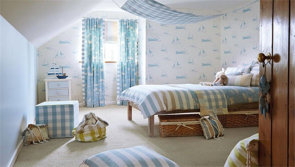 ด้วยเพดานสูงและสี่เหลี่ยมขนาดใหญ่คุณสามารถเติมเต็มห้องด้วยสีสดใสคุณลักษณะที่สนับสนุนรูปแบบของการออกแบบ ดังนั้นสำหรับธีมทางทะเลคุณสามารถใช้วอลล์เปเปอร์กับเรือใบที่สวยงามใช้หน้าอก "โจรสลัด" สำหรับเก็บของเล่นใช้เชือกและแบบจำลองเรือในการออกแบบ