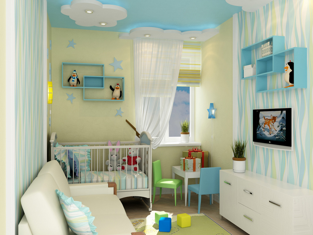 ความสะดวกสบายของเด็กในเรือนเพาะชำเริ่มต้นด้วยการปรากฏตัวของผนัง ขึ้นอยู่กับอายุความต้องการเปลี่ยนไปเช่นเดียวกับข้อกำหนดสำหรับการออกแบบ