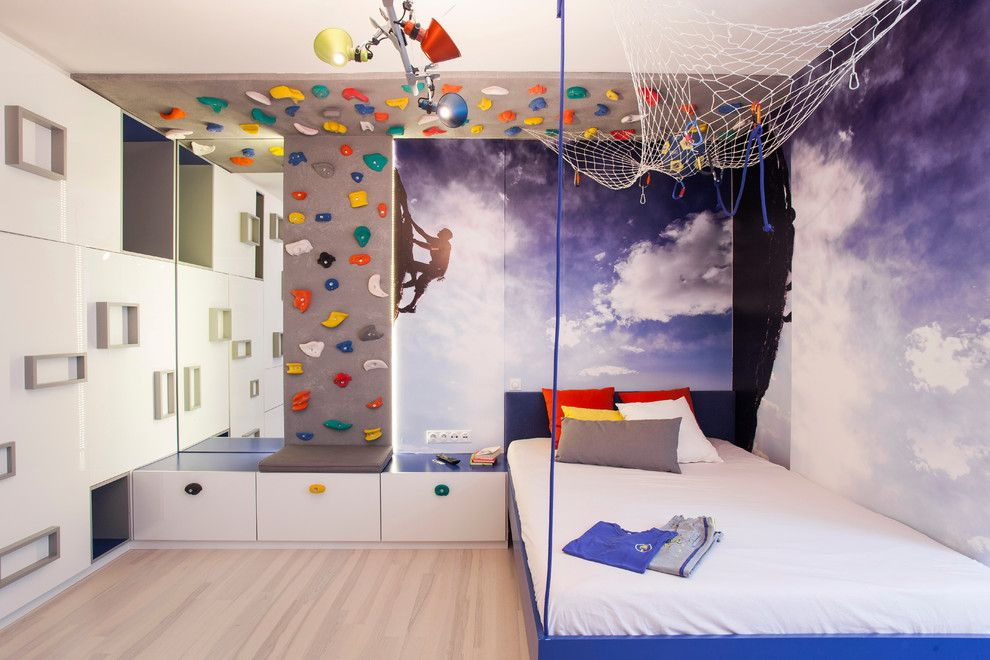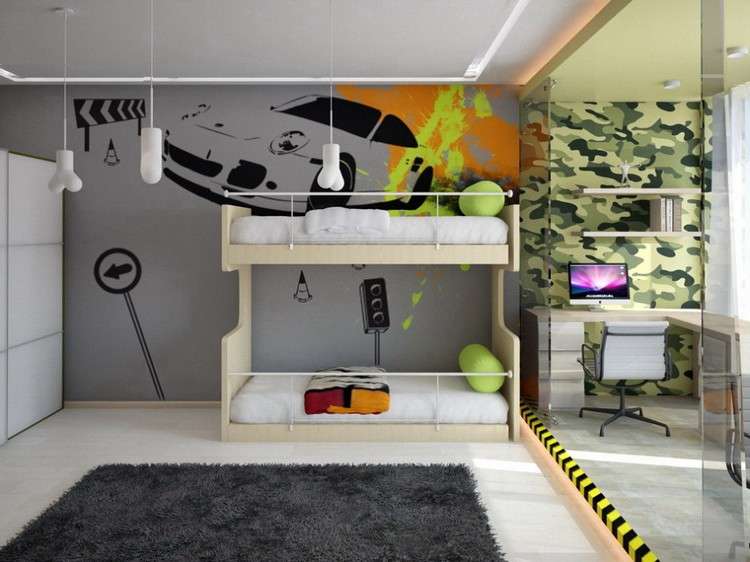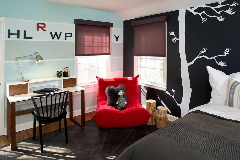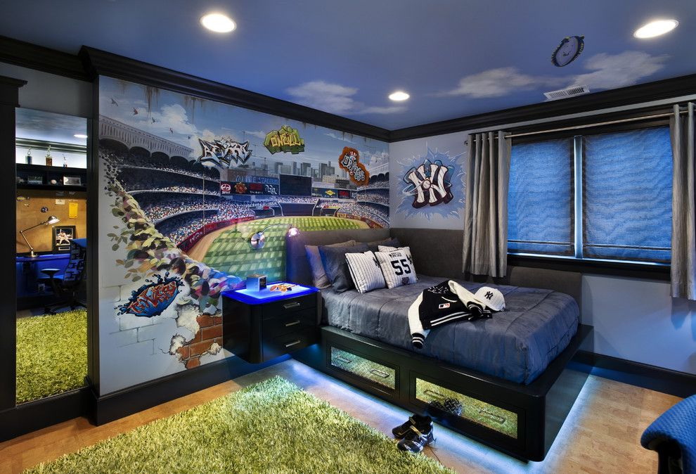 เมื่อโตขึ้นเด็กชายจะถูกกำหนดด้วยรสนิยมของเขา สำหรับการวางห้องของนักเรียนอาวุโสคุณสามารถเลือกวอลล์เปเปอร์ที่เป็นกลางเน้นแสงสว่างไปที่ผนังด้านเดียวเท่านั้น หนึ่งในตัวเลือกคือกราฟฟิตีที่น่าตื่นเต้น แต่ธีมดนตรีหรือภาพเป็นไปได้ซึ่งเกี่ยวข้องกับความหลงใหลในกีฬาหรืออาชีพในอนาคต