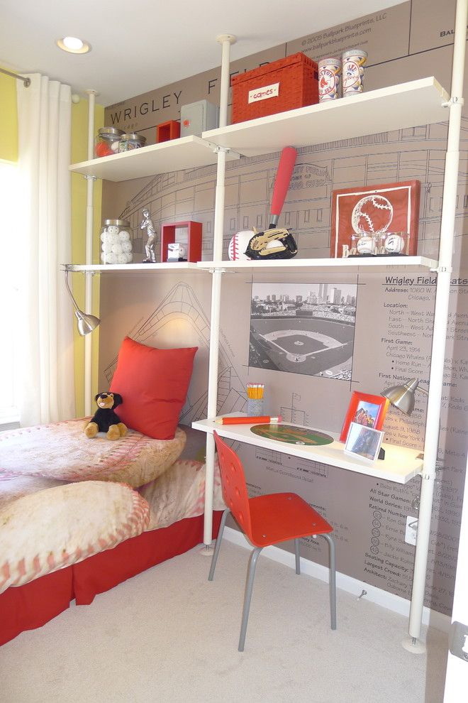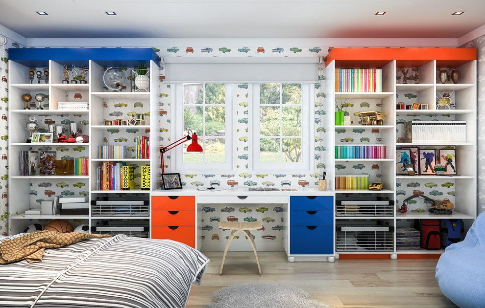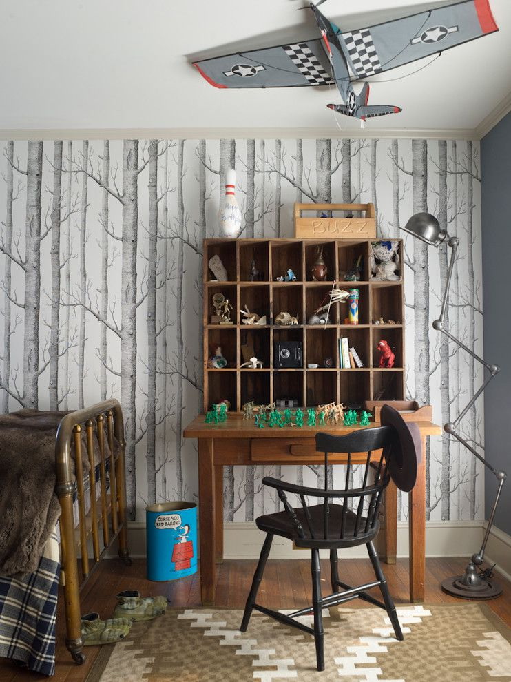 เด็กนักเรียนมีความพึงพอใจอยู่แล้วดังนั้นวอลล์เปเปอร์ที่มีธีมที่มีภาพของสัตว์จุดยึดทะเลรถยนต์หรือจรวดจะค่อนข้างสอดคล้องกับอายุของเด็กชาย ที่น่าสนใจในห้องของเด็กนักเรียนมองผนังวอลล์เปเปอร์ด้วยภาพของแผนที่เก่า ๆ หนังสือที่ให้ข้อมูลและแม้แต่การทำซ้ำภาพวาดที่มีชื่อเสียง