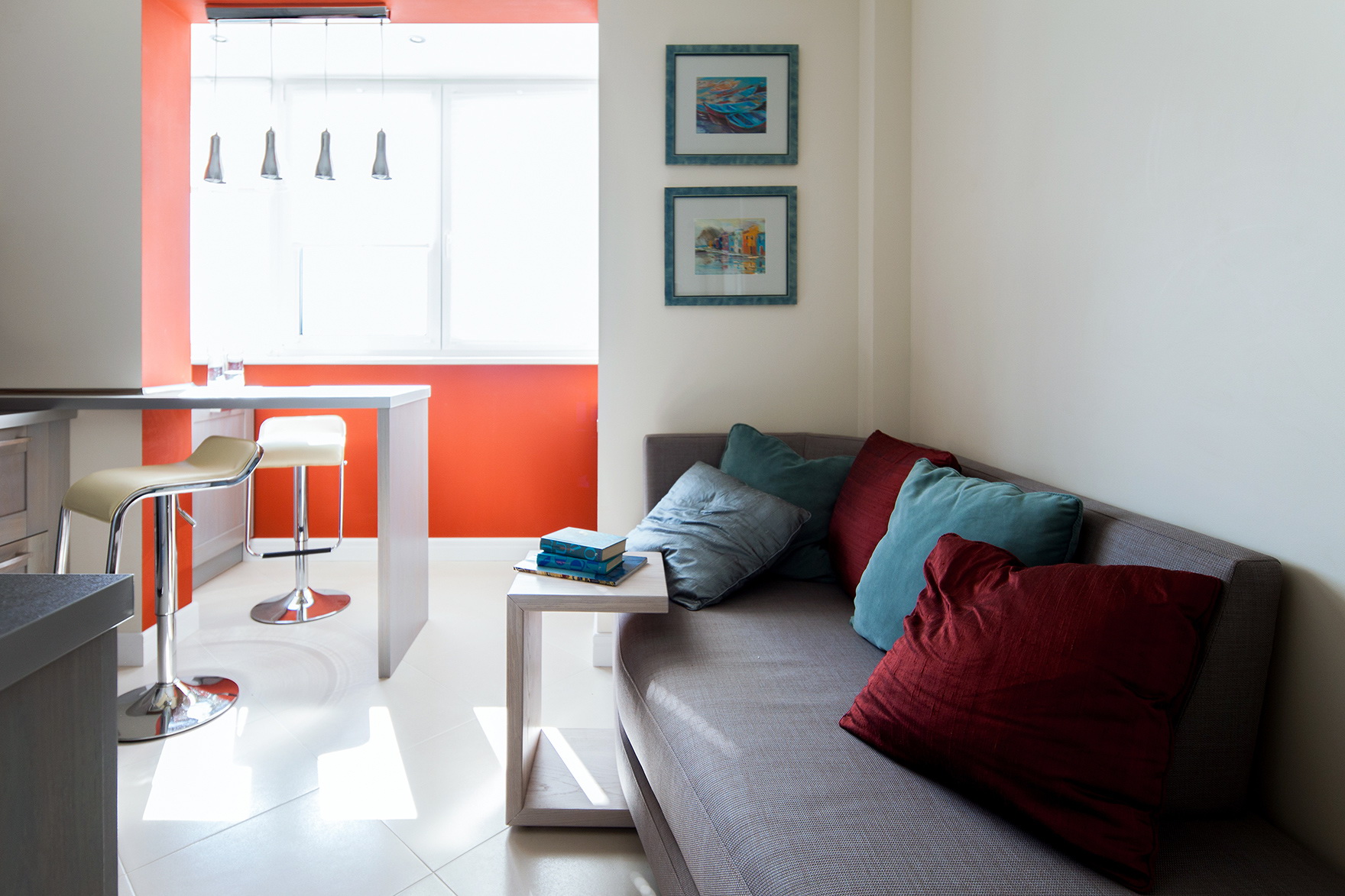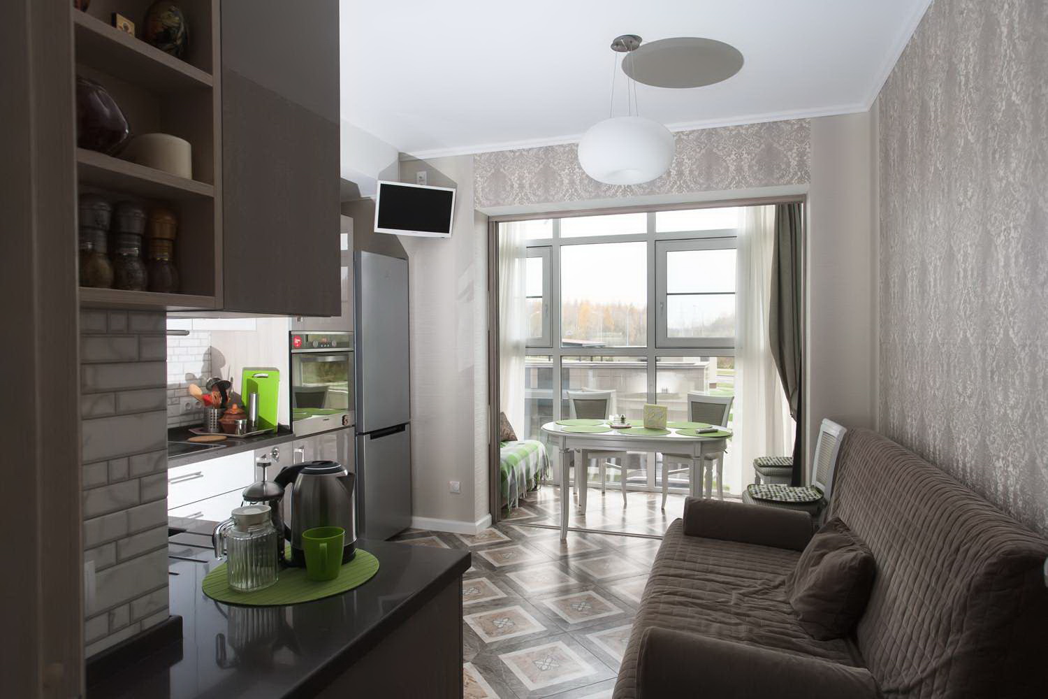 มีระเบียงขนาดใหญ่ในอพาร์ทเมนต์หนึ่งห้องคุณสามารถ "โอน" ห้องครัวที่นั่นได้อย่างสมบูรณ์ทำให้มีพื้นที่เหลือเฟือสำหรับห้องนั่งเล่นพร้อมพื้นที่รับประทานอาหาร