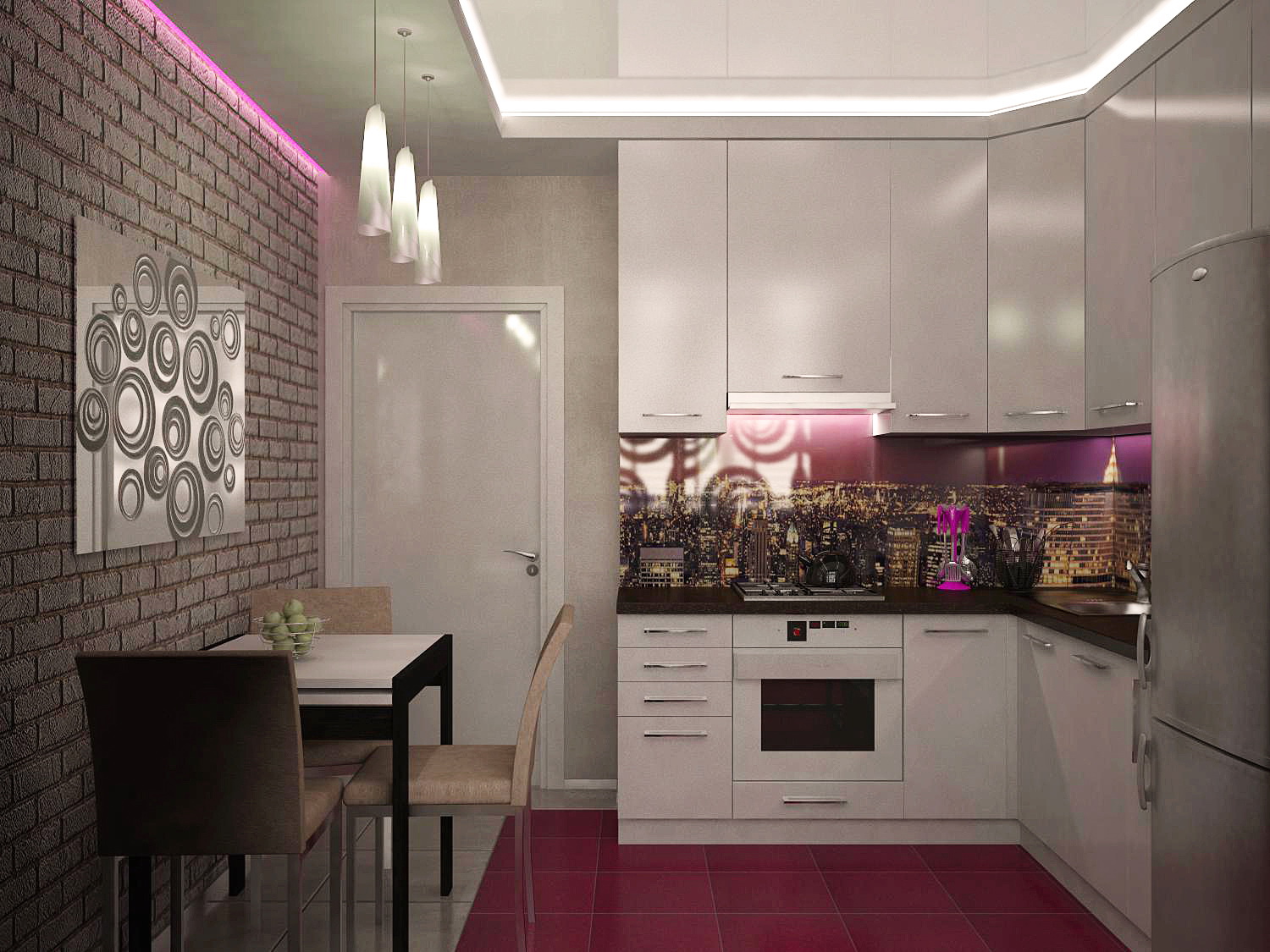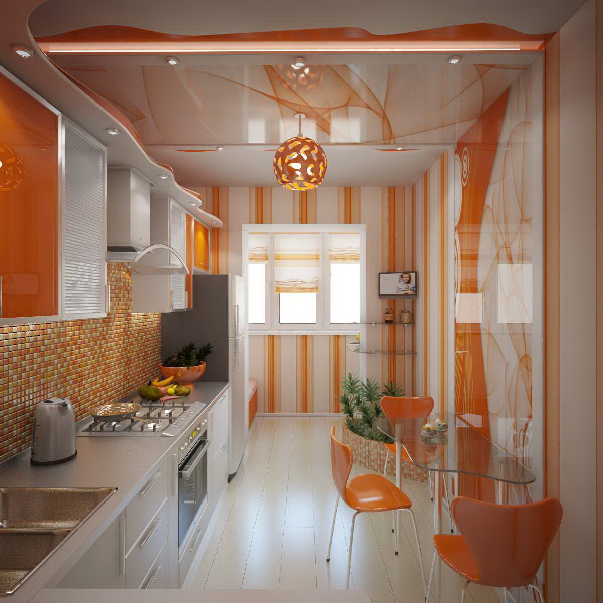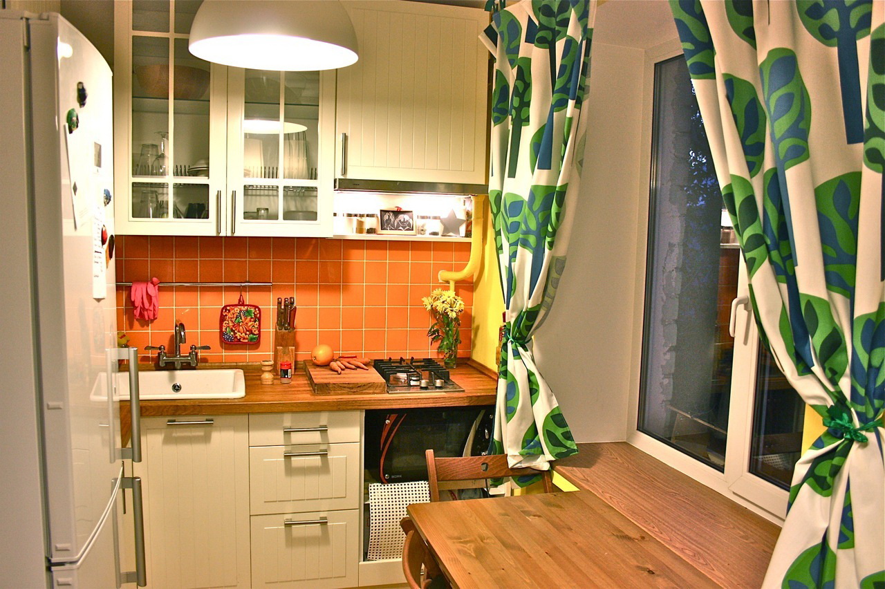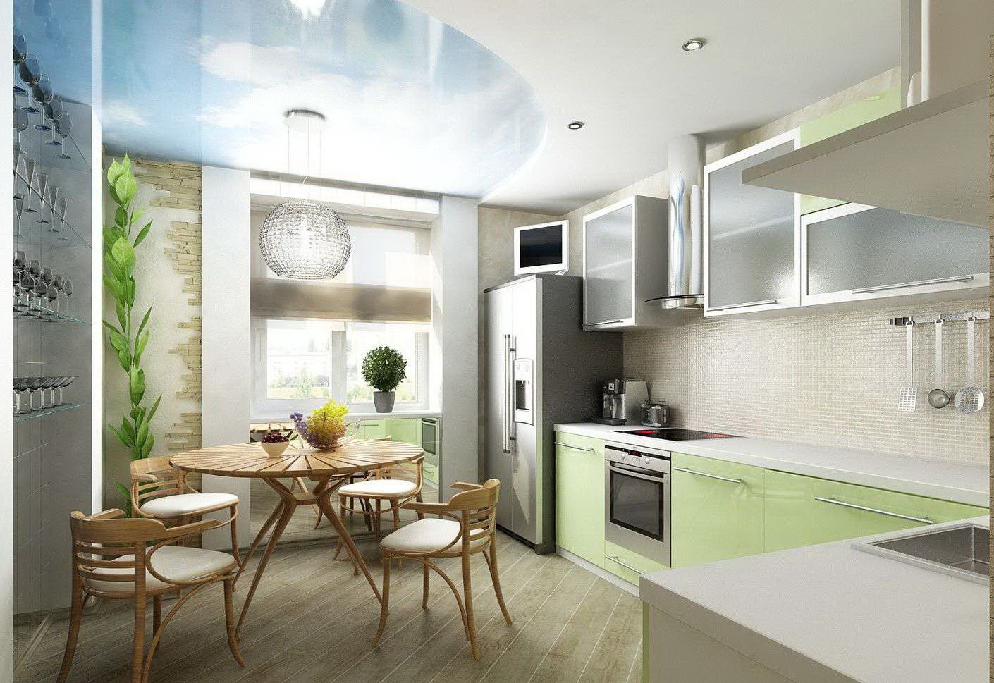 การสื่อสารทั้งหมดอ่างล้างจานและเตาสามารถโอนไปยังระเบียงที่มองเห็นจะเพิ่มพื้นที่ของห้องครัว นอกจากนี้ที่นี่คุณสามารถวางตู้เย็นเพื่อเพิ่มพื้นที่ทำงานจากเครื่องใช้ในครัวเรือน