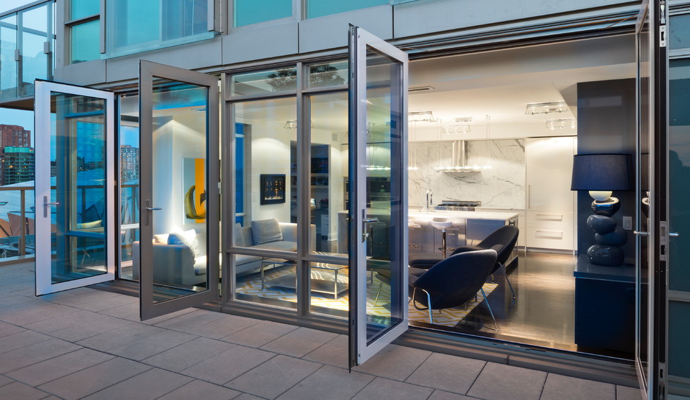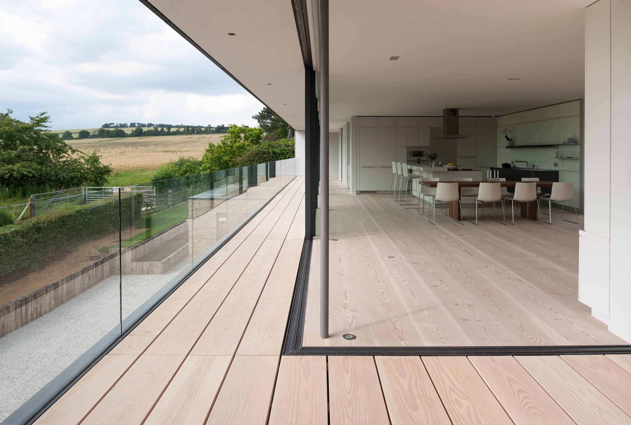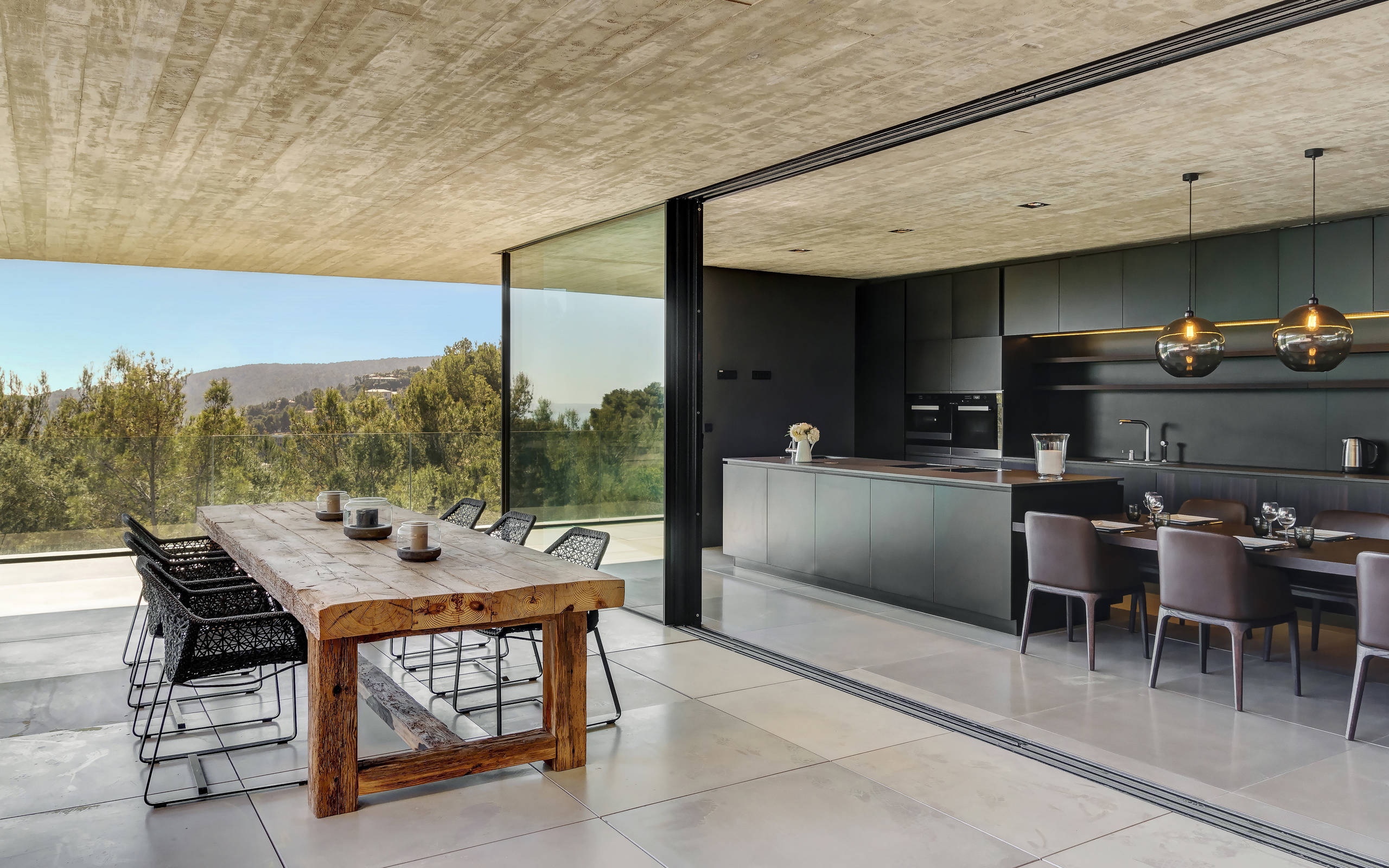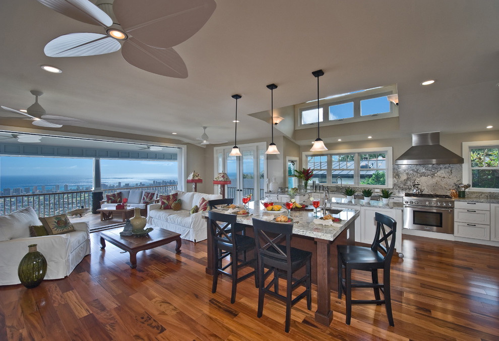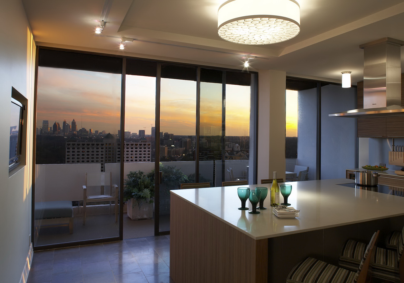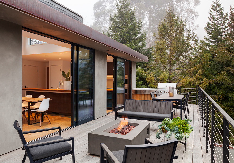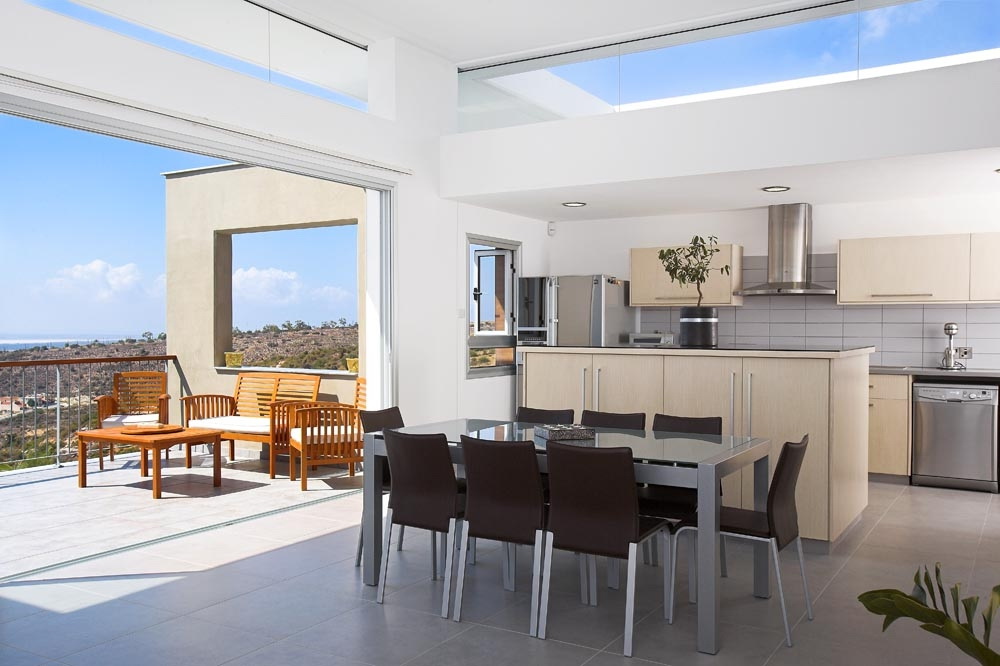 หากระเบียงตั้งอยู่ต่ำกว่าพื้นที่ครัวความรู้สึกของห้อง "ส่วนตัว" ที่แสนสบายจะถูกสร้างขึ้นหากตารางอยู่ใกล้กับผนังด้านนอก