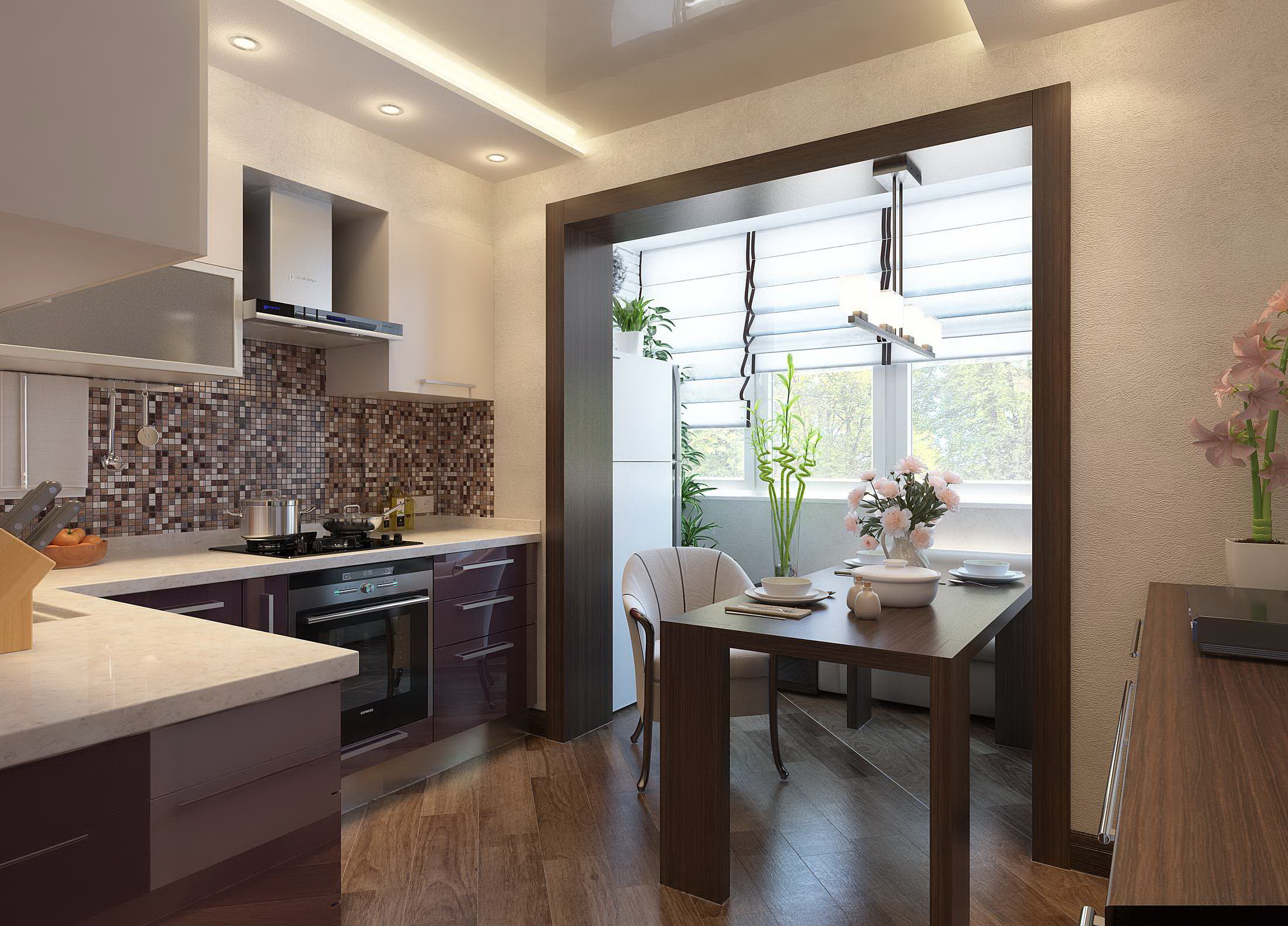ไม่ต้องสงสัยเลยว่าการจัดเตรียมทางเทคนิคของครัวและระเบียงเป็นสิ่งแรก แต่ทางออกการออกแบบที่เหมาะสมเท่านั้นที่จะช่วยให้คุณสร้างบรรยากาศที่น่าพึงพอใจและรูปลักษณ์ที่น่าดึงดูดใจของห้อง