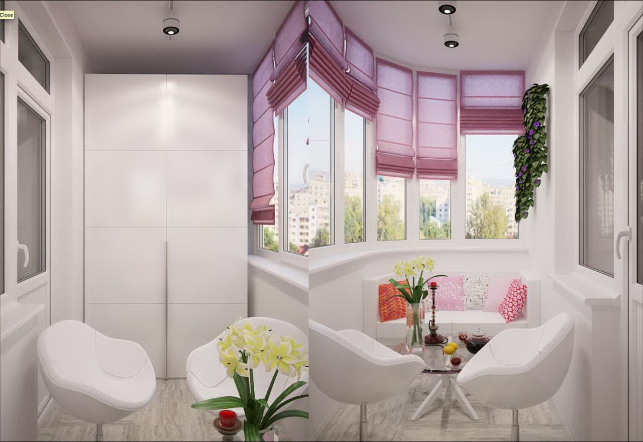 พื้นที่รวมกับระเบียงจะสะดวกสบายจะเป็นประโยชน์และสวยงาม จินตนาการมัณฑนากรสำหรับความคิดนี้ไม่มีที่สิ้นสุดส่วนที่ว่างสามารถใช้สำหรับการเสร็จสิ้นต่างๆและข้อบกพร่องเช่นหิ้งหน้าต่างสามารถกลายเป็นตารางที่ไม่ได้มาตรฐานสำหรับการดื่มชา