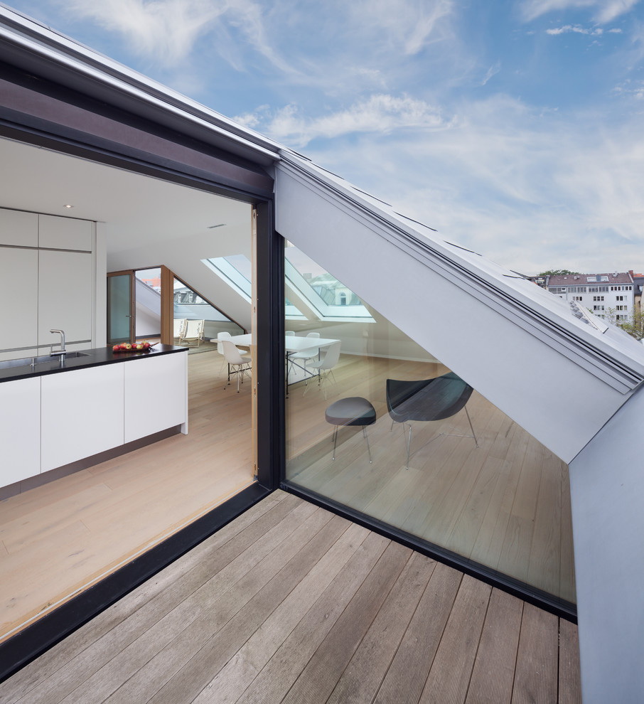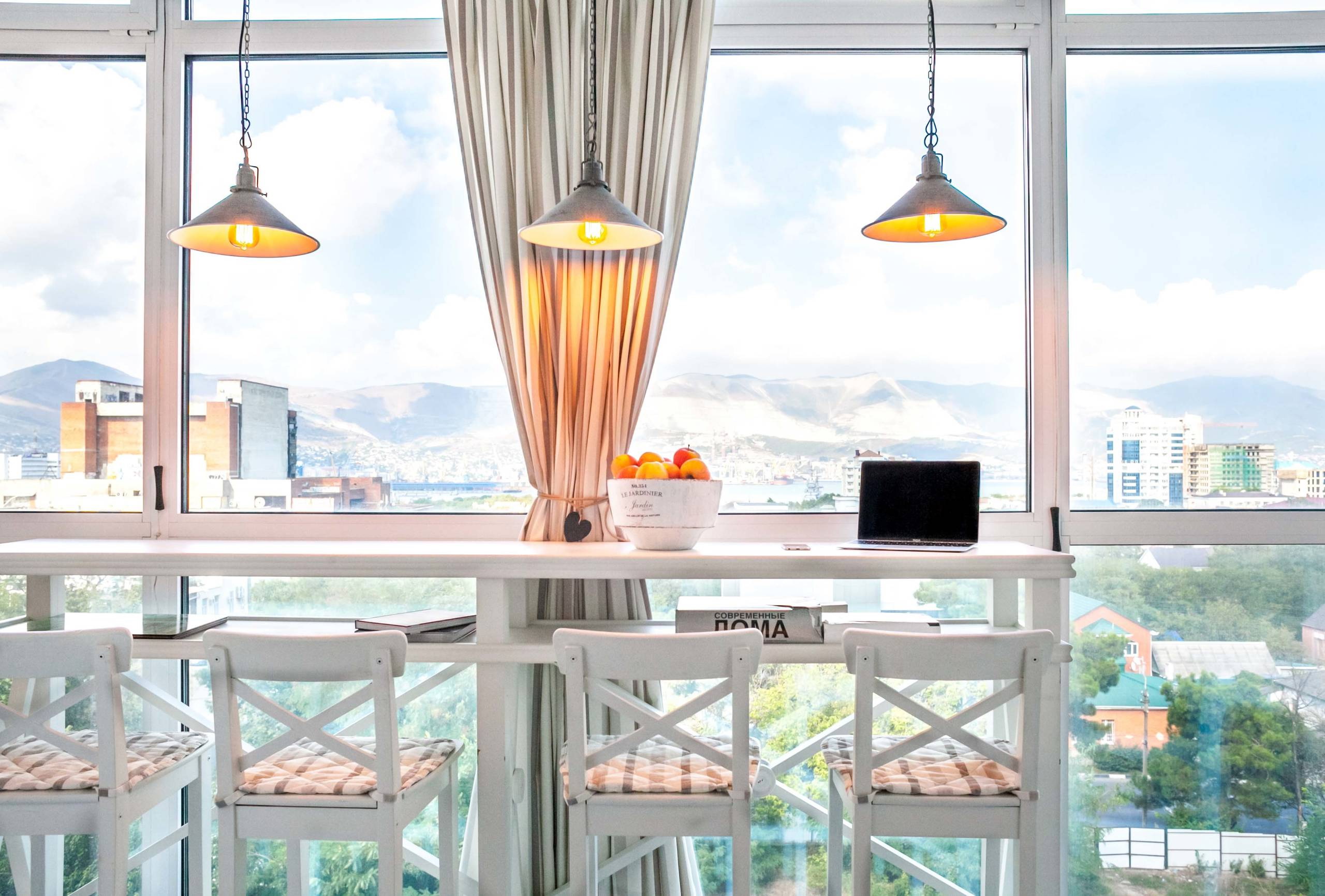 เจ้าของระเบียงขนาดใหญ่สามารถพกพื้นที่ทำงานทั้งหมดไปยังหน้าต่างได้อย่างง่ายดาย จากนั้นห้องที่เหลือจะกลายเป็นพื้นที่รับประทานอาหารที่กว้างขวางพร้อมที่นั่งเพิ่มเติม