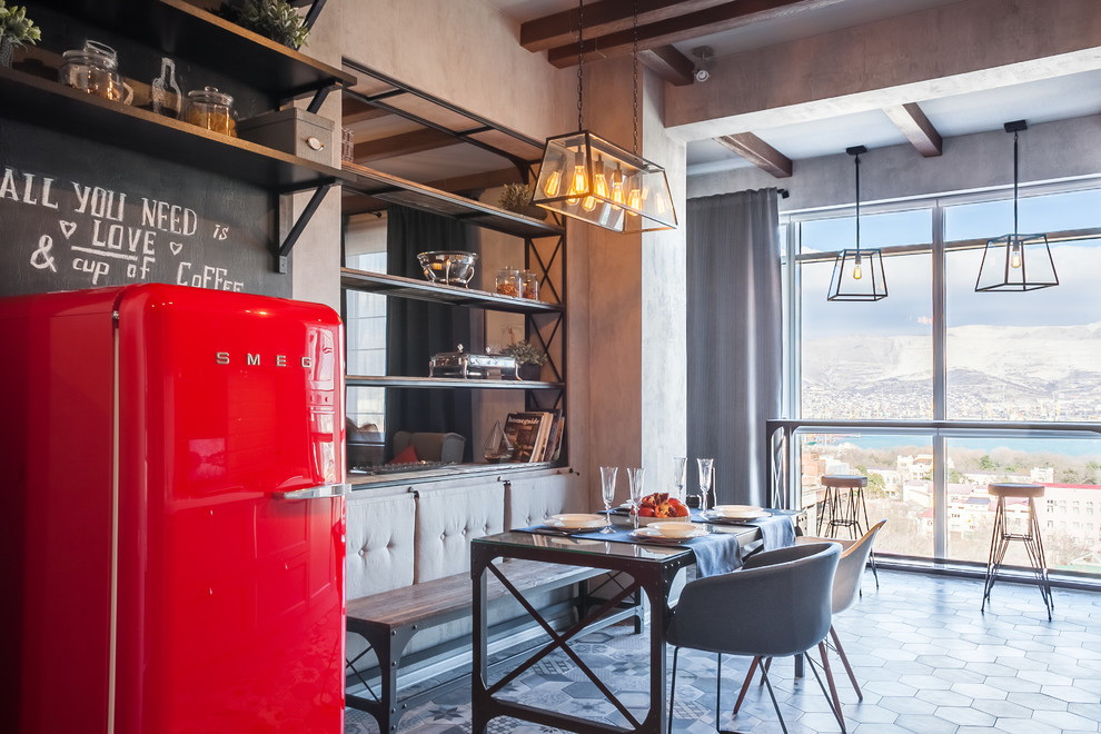 ตัวอย่างเช่นมันเป็นไปได้ที่จะติดตั้งตู้เพิ่มเติมสำหรับเครื่องใช้ในครัวหรือสร้างพื้นที่รับประทานอาหารที่สะดวกสบายพร้อมโต๊ะขนาดใหญ่