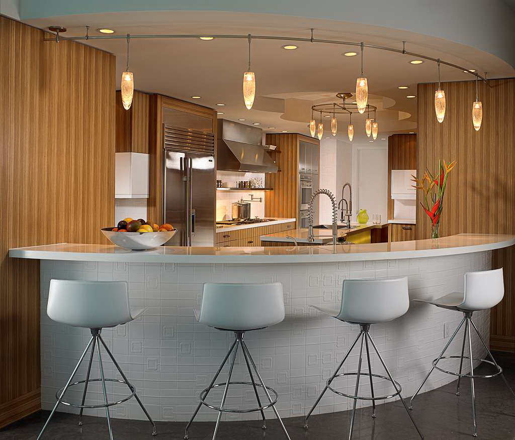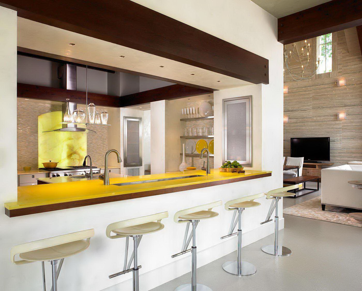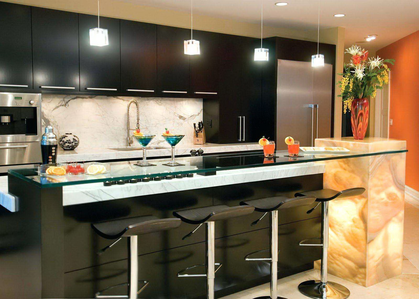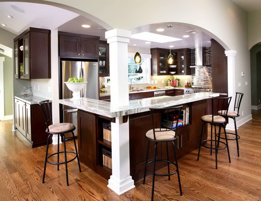 เคาน์เตอร์บาร์โดยไม่คำนึงถึงขนาดและรูปร่างของห้องครัวสามารถเพิ่มความน่าสนใจที่จะทำหน้าที่ที่จำเป็นและตกแต่งภายใน